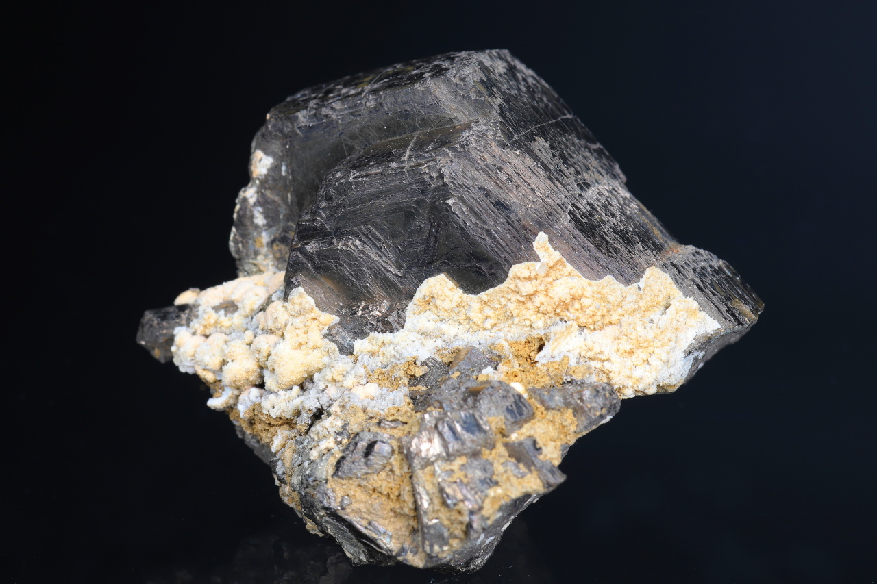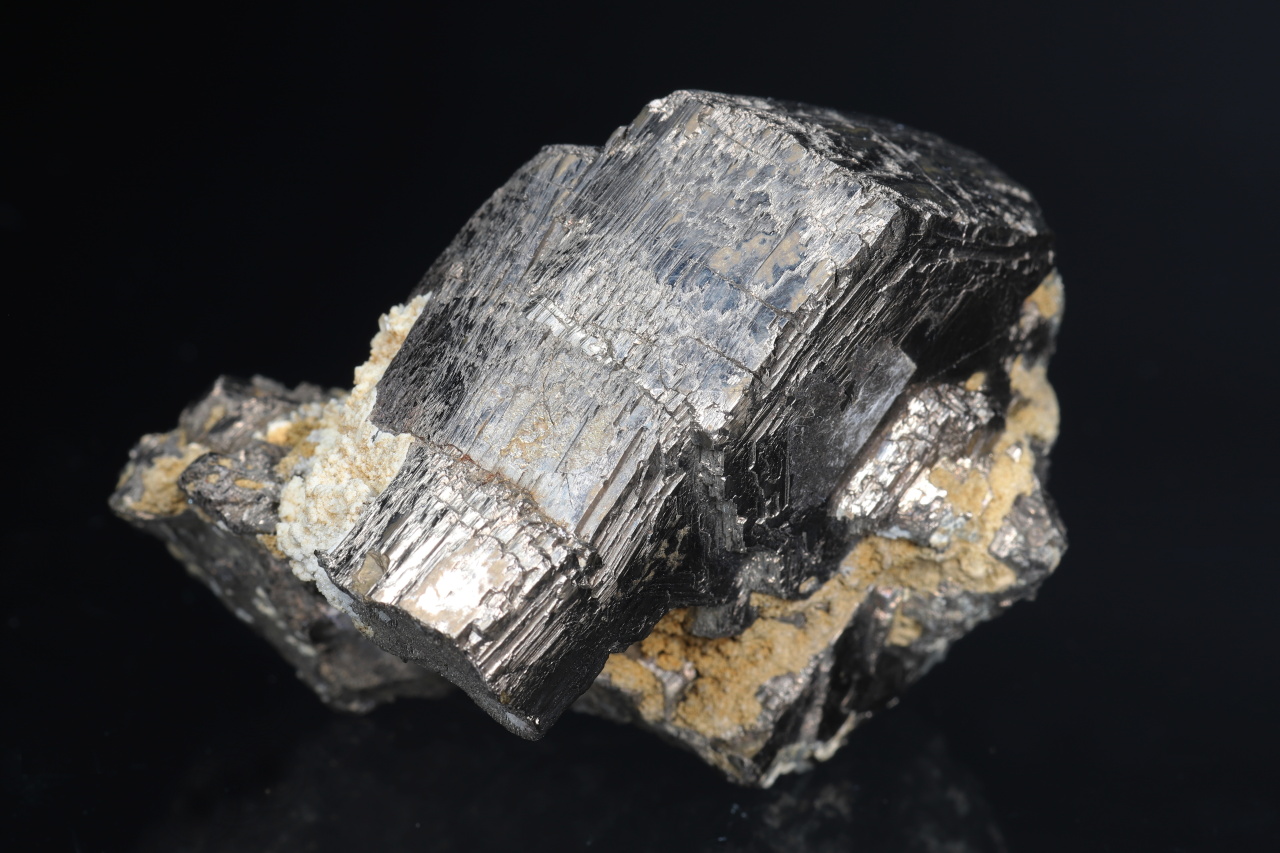 Thick tabular bronze metallic luster crystals of pyrrhotite from the classic deposit Dalněhorsk.
