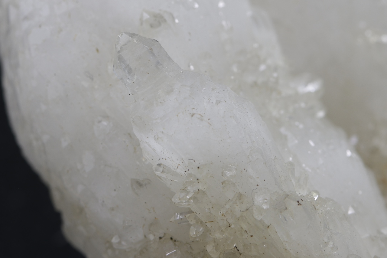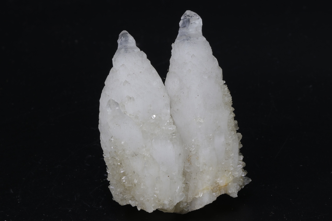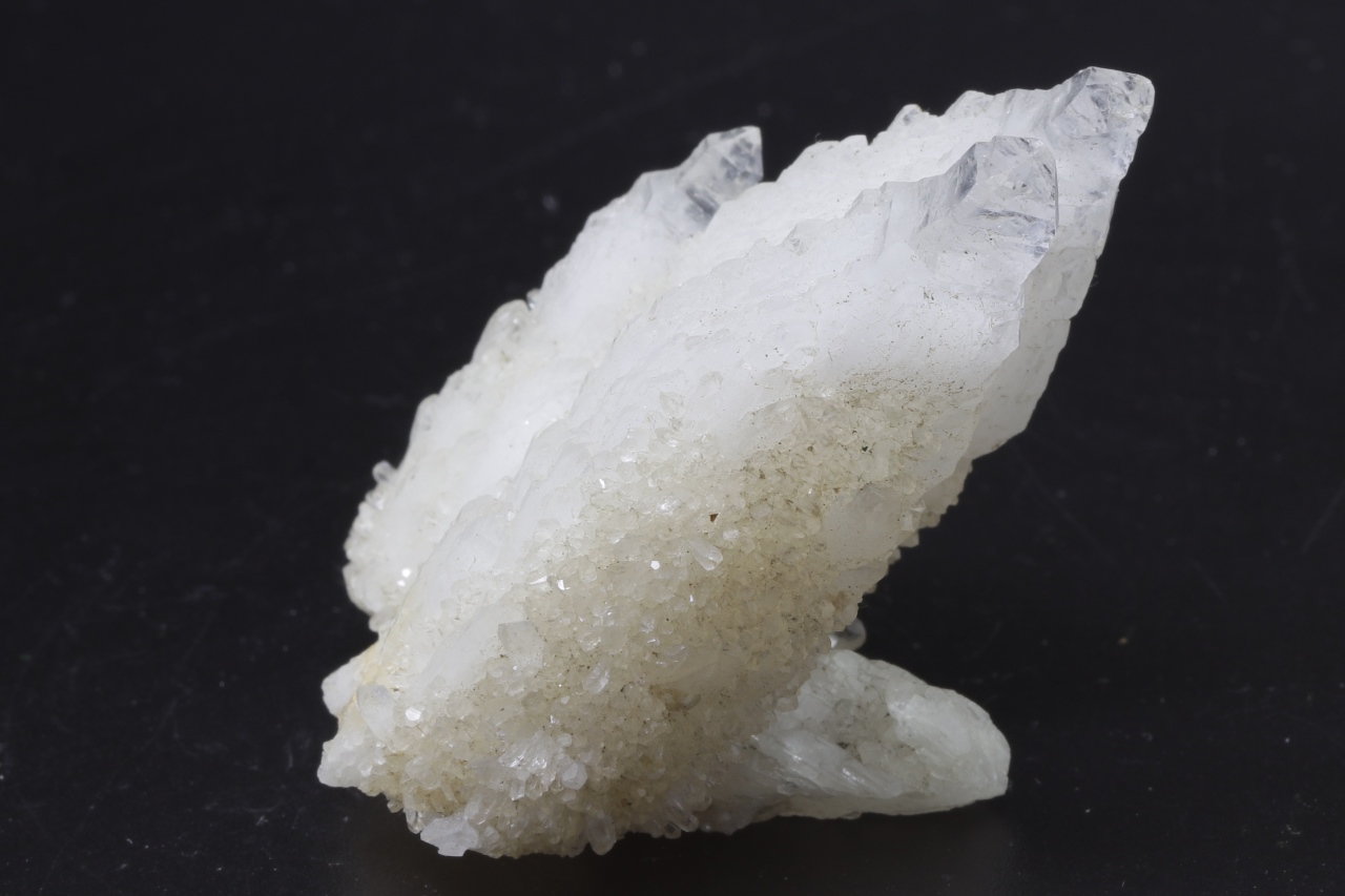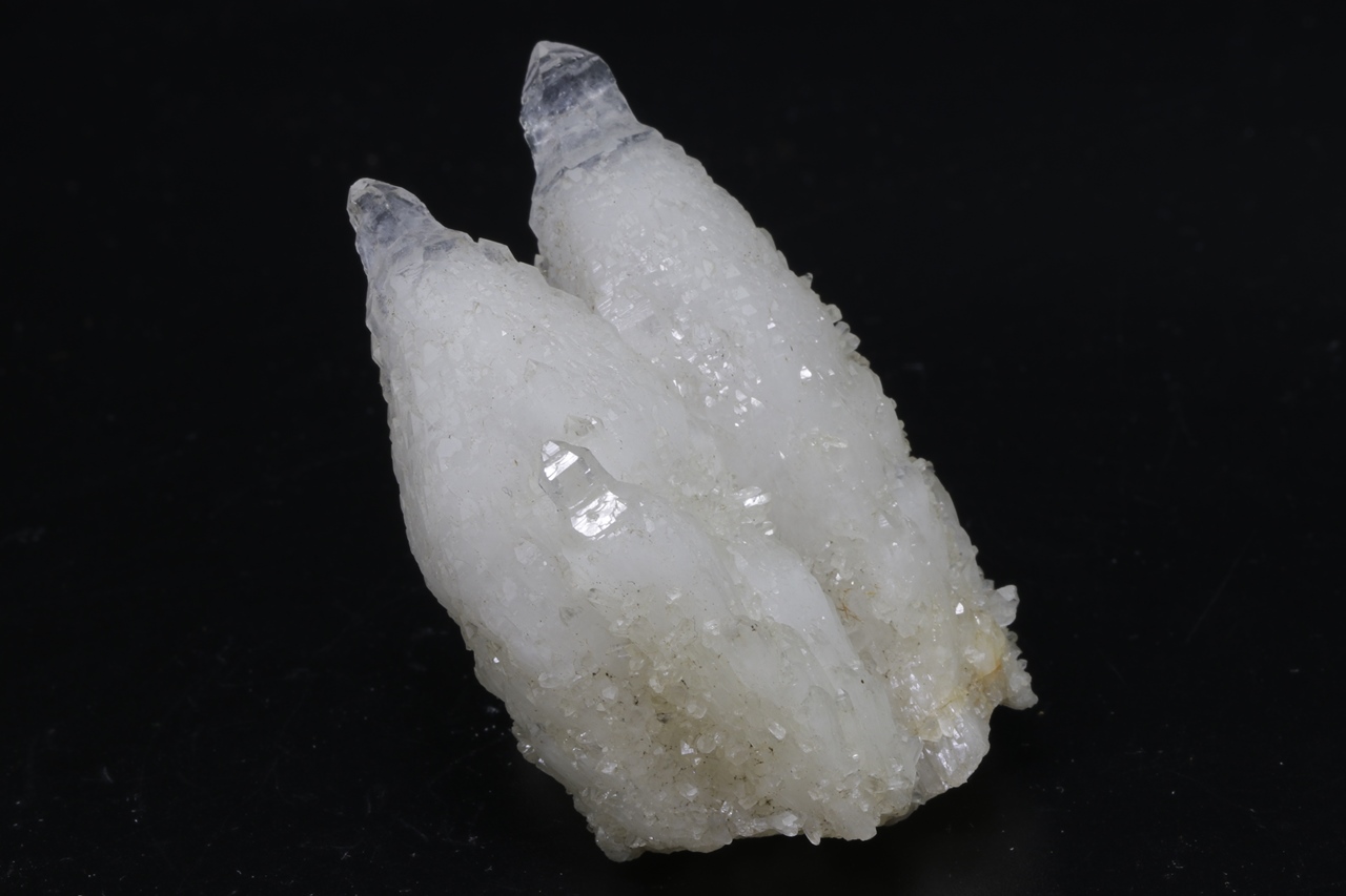 Unusual quartz habit in the form of an “inverted scepter” overgrown with smaller stepped crystals and second-generation quartz from the back side.
