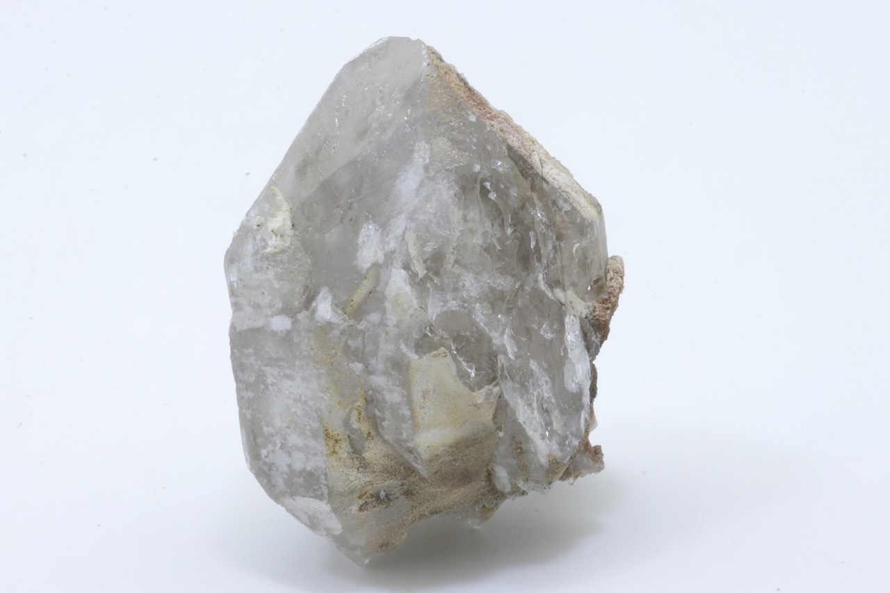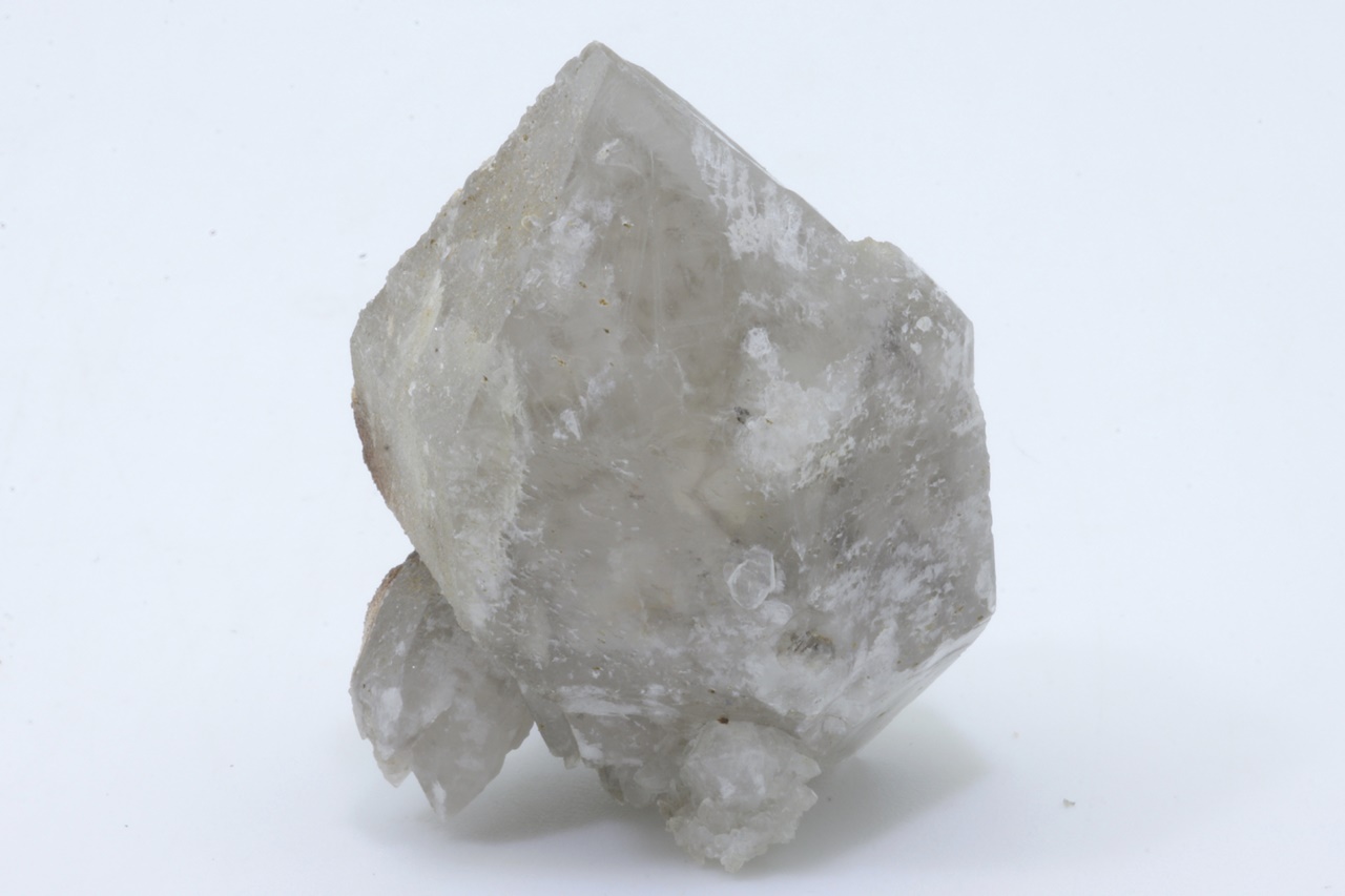 A double-terminated quartz crystal that transitions into a light smoky quartz in its center.