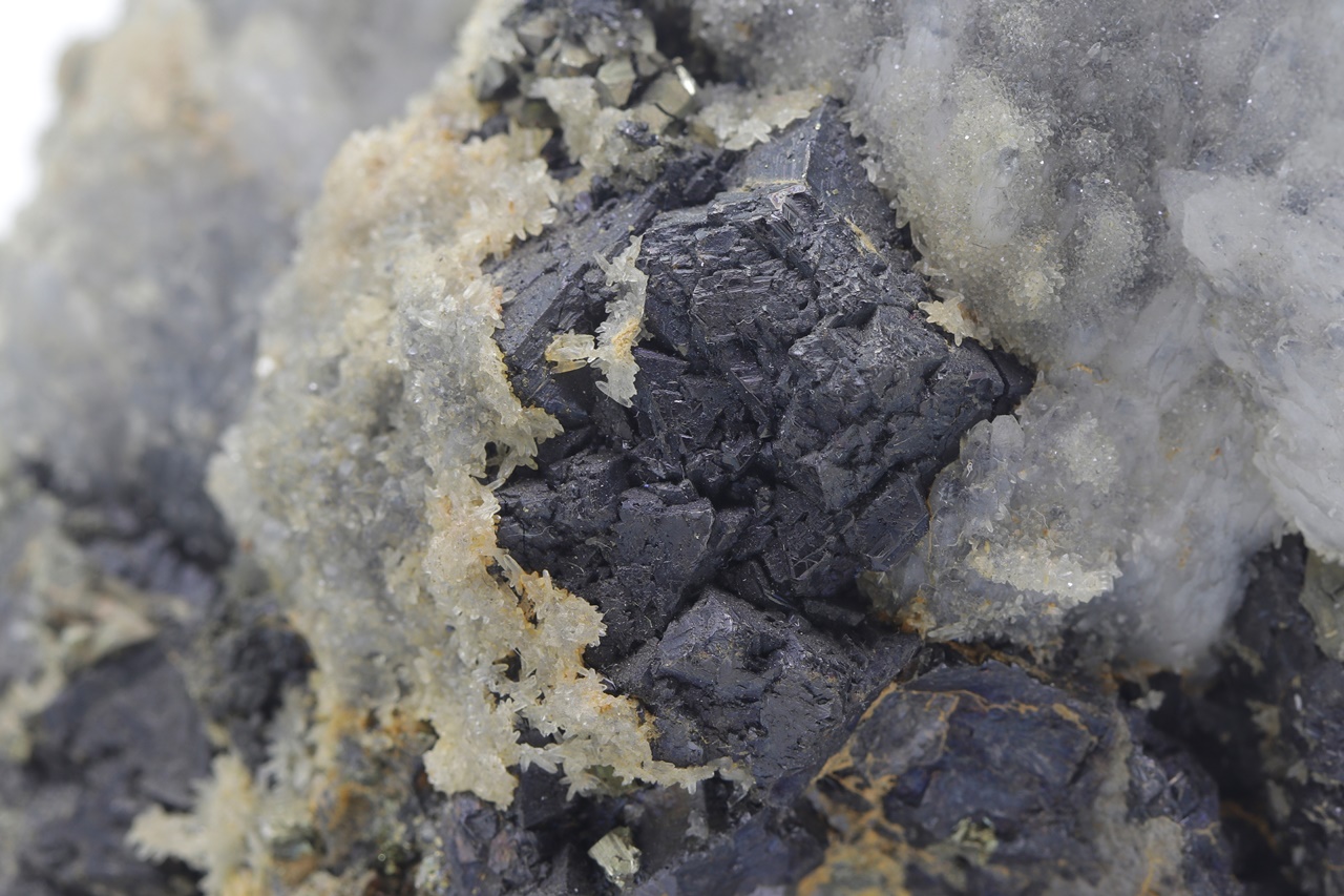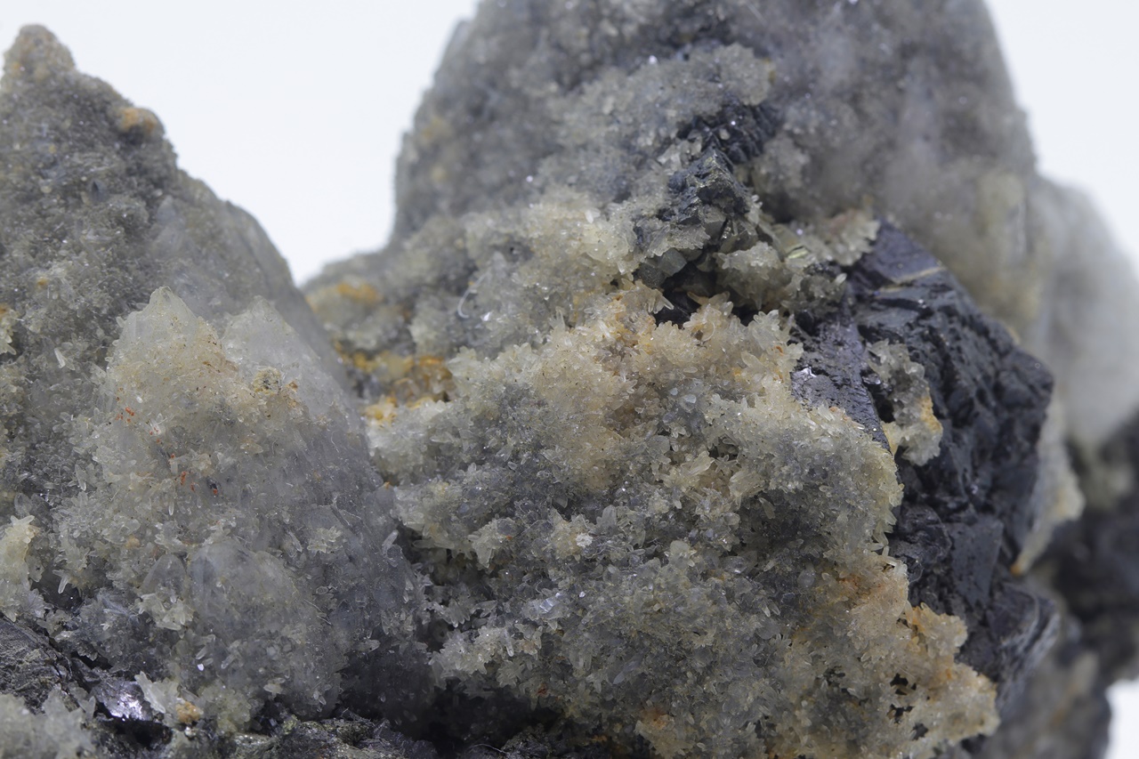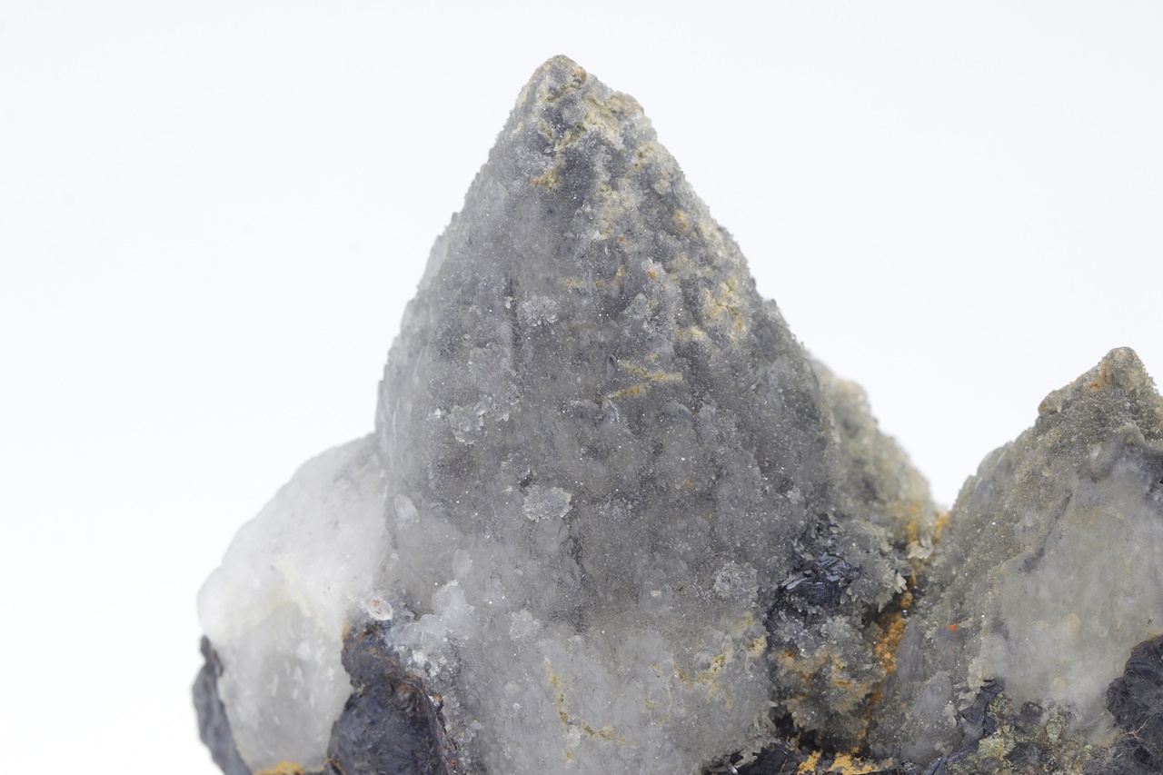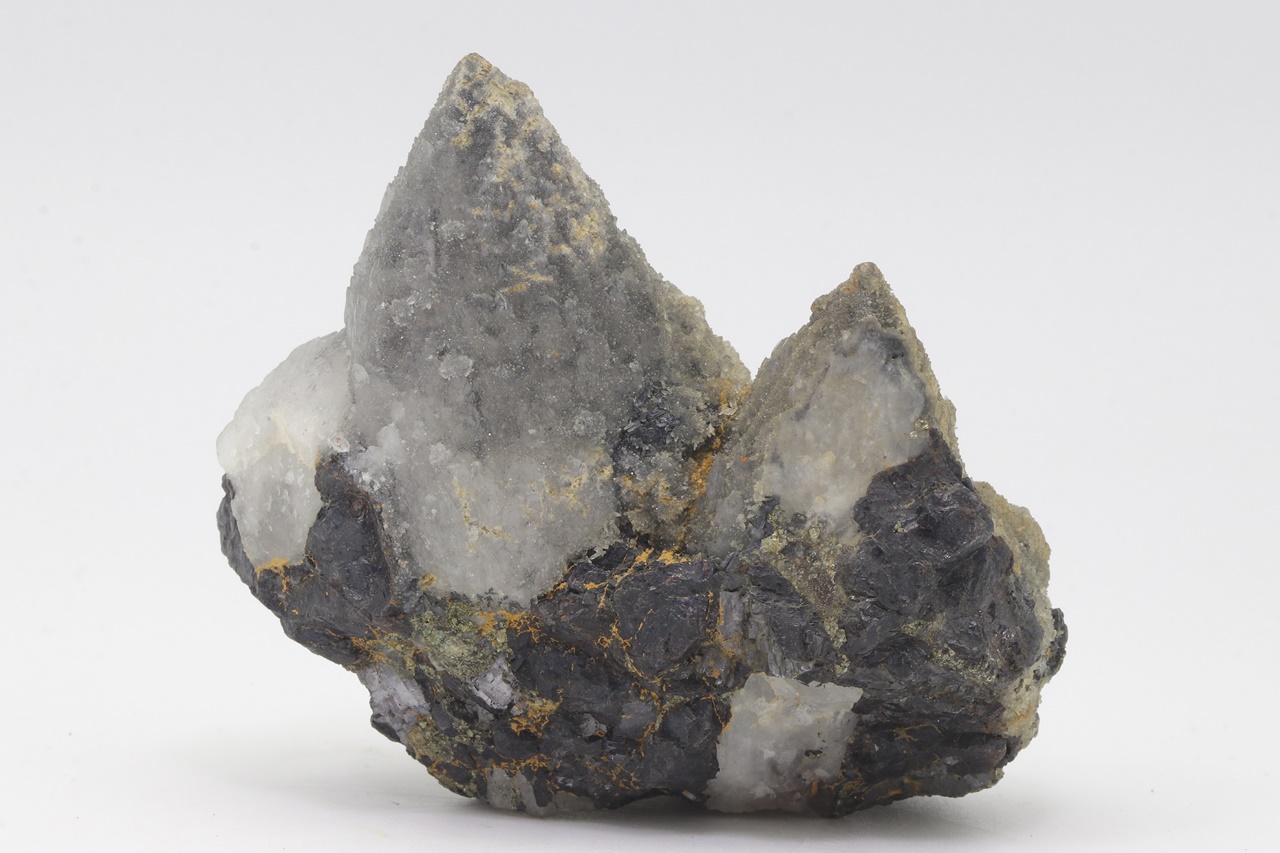 Two large quartz crystals, overgrown with smaller hypoparallel quartz crystals, on a base consisting of sphalerite.
