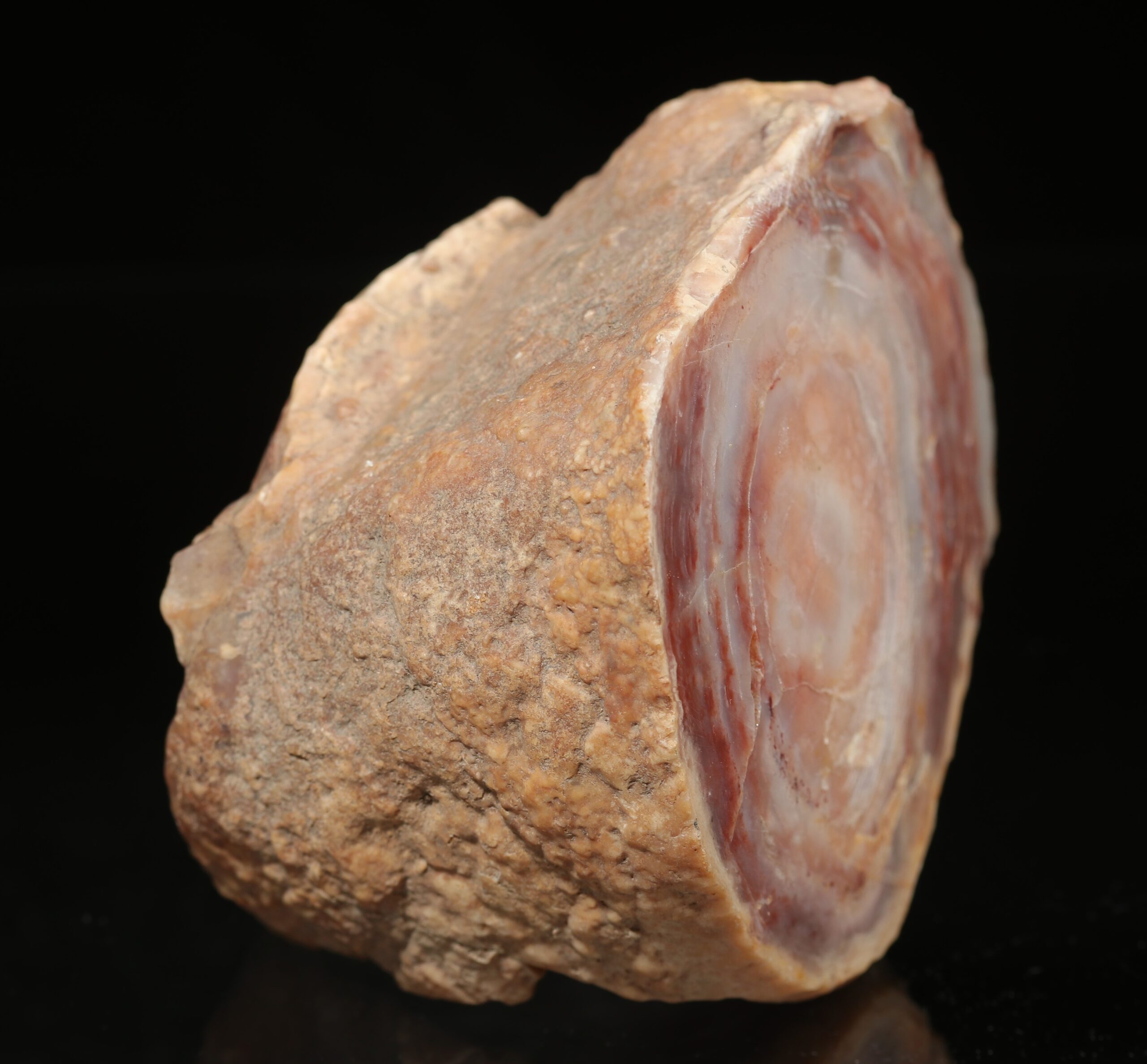 Sample of quartz with interesting patterning. The stone is polished on one side and in its natural form on the other.