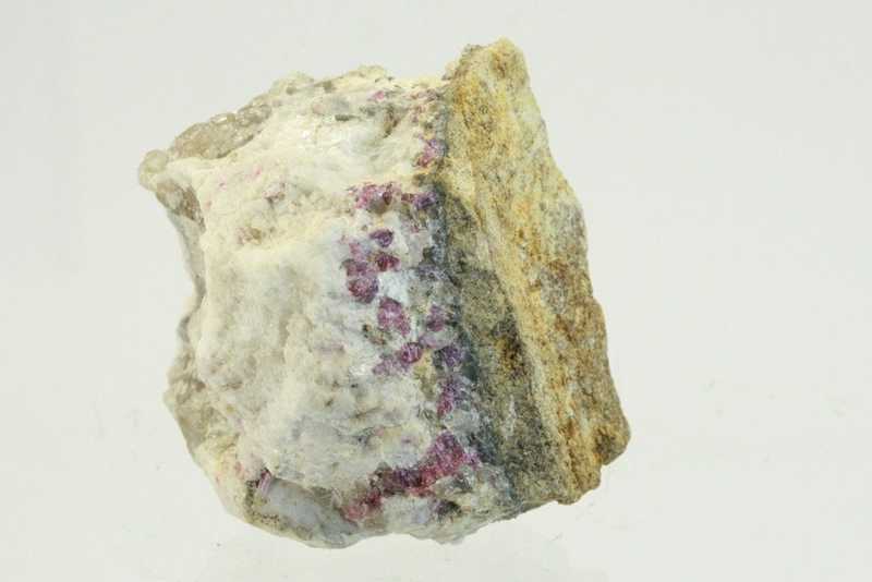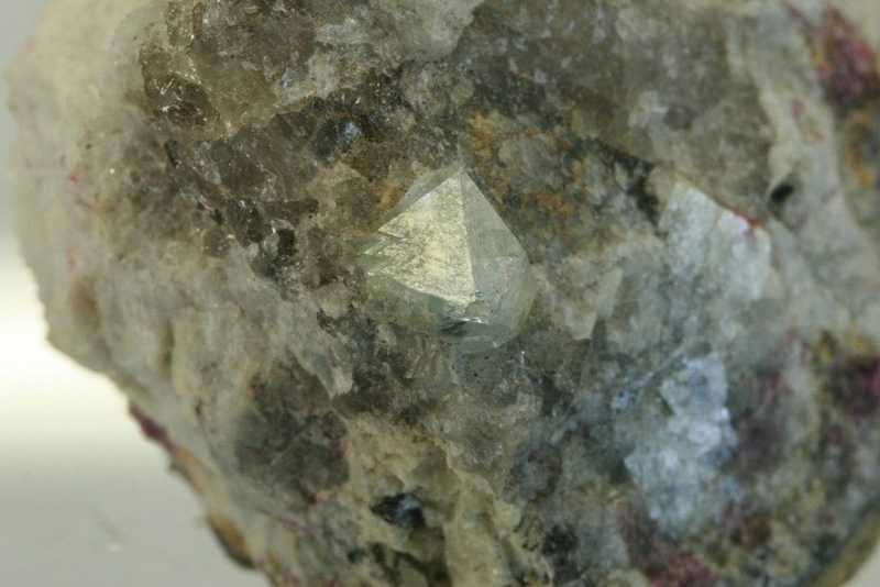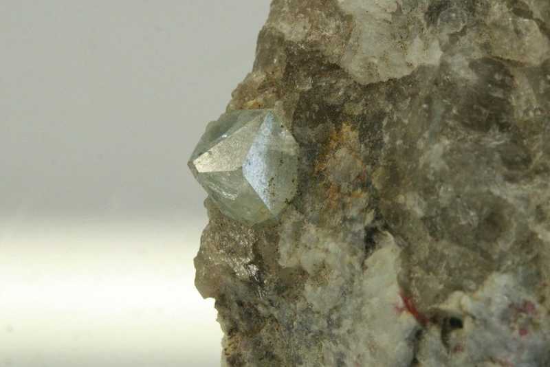 Rare light blue rhodizite with red liddicoatite tourmaline. A perfectly terminated rhodizite crystal approximately 5 mm in size.