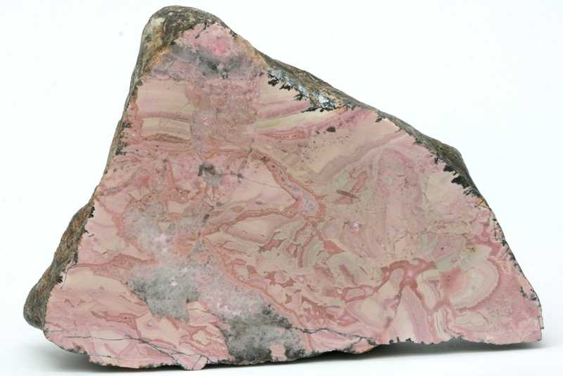 Polished rhodochrosite from Cavnic. Beautiful texture of manganese carbonate.