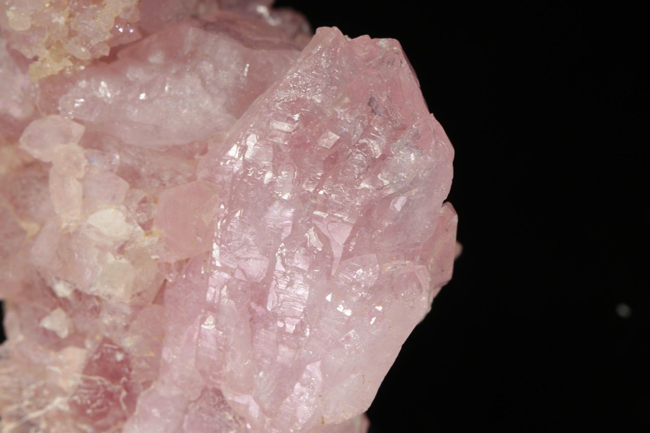 An exceptional specimen of rarely crystallized rose quartz forming a cluster of several hypopararell intergrown crystals.