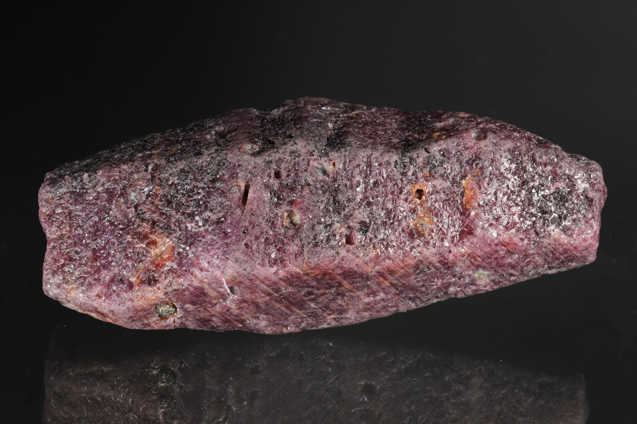 An unusually large loose spindle-shaped crystal of saturated purple-red corundum – ruby. A representative collection specimen of the gemstone variety of corundum from Sierra Leone.