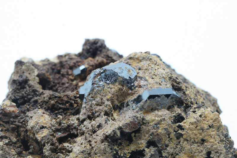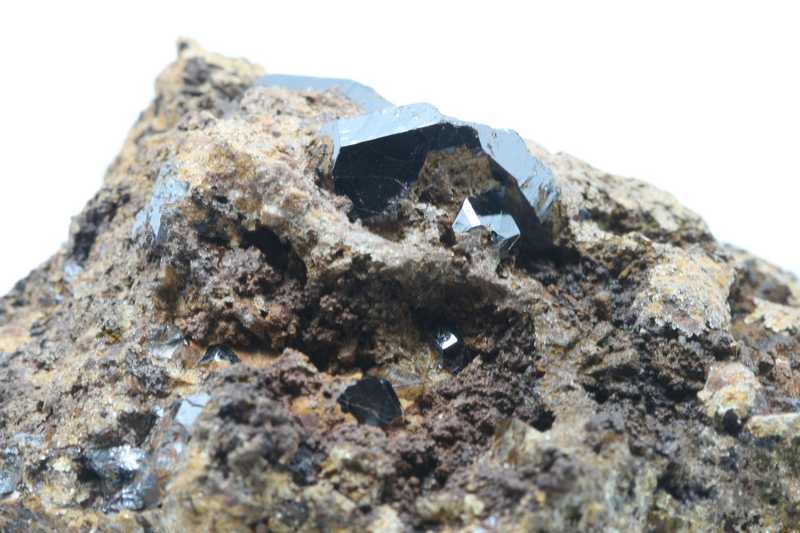 Sample with crystals of titanium oxide rutile. Several terminated glossy black crystals of rutile up to 18 mm in size.
