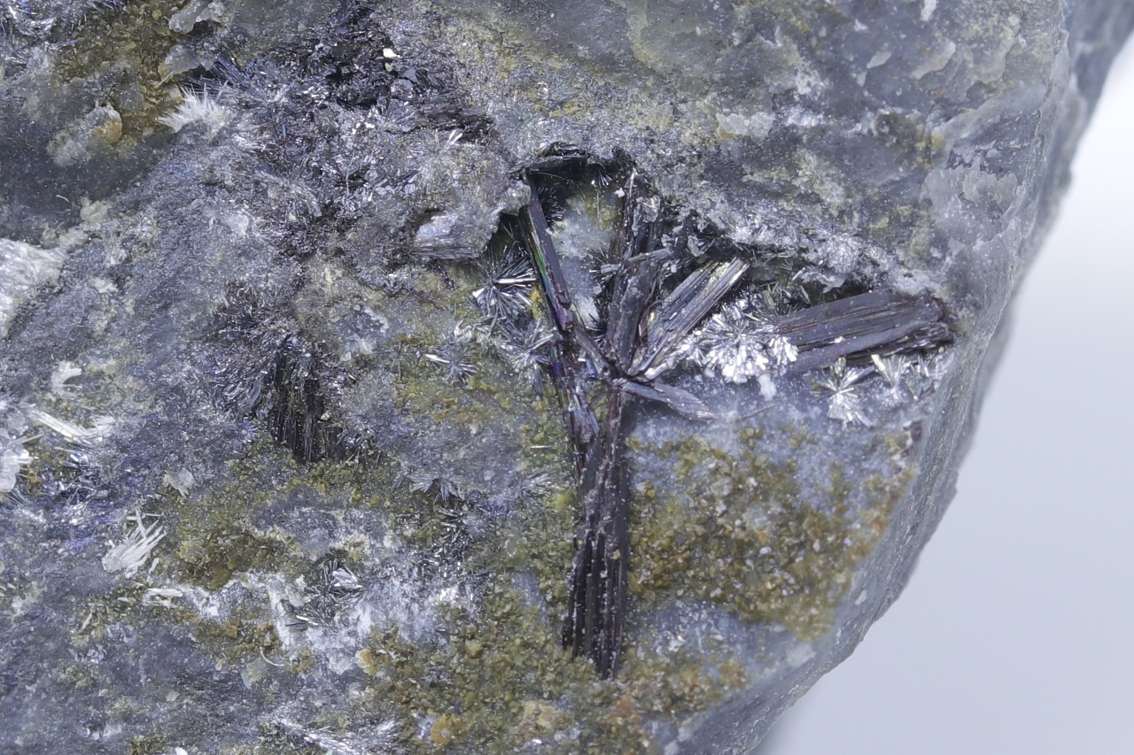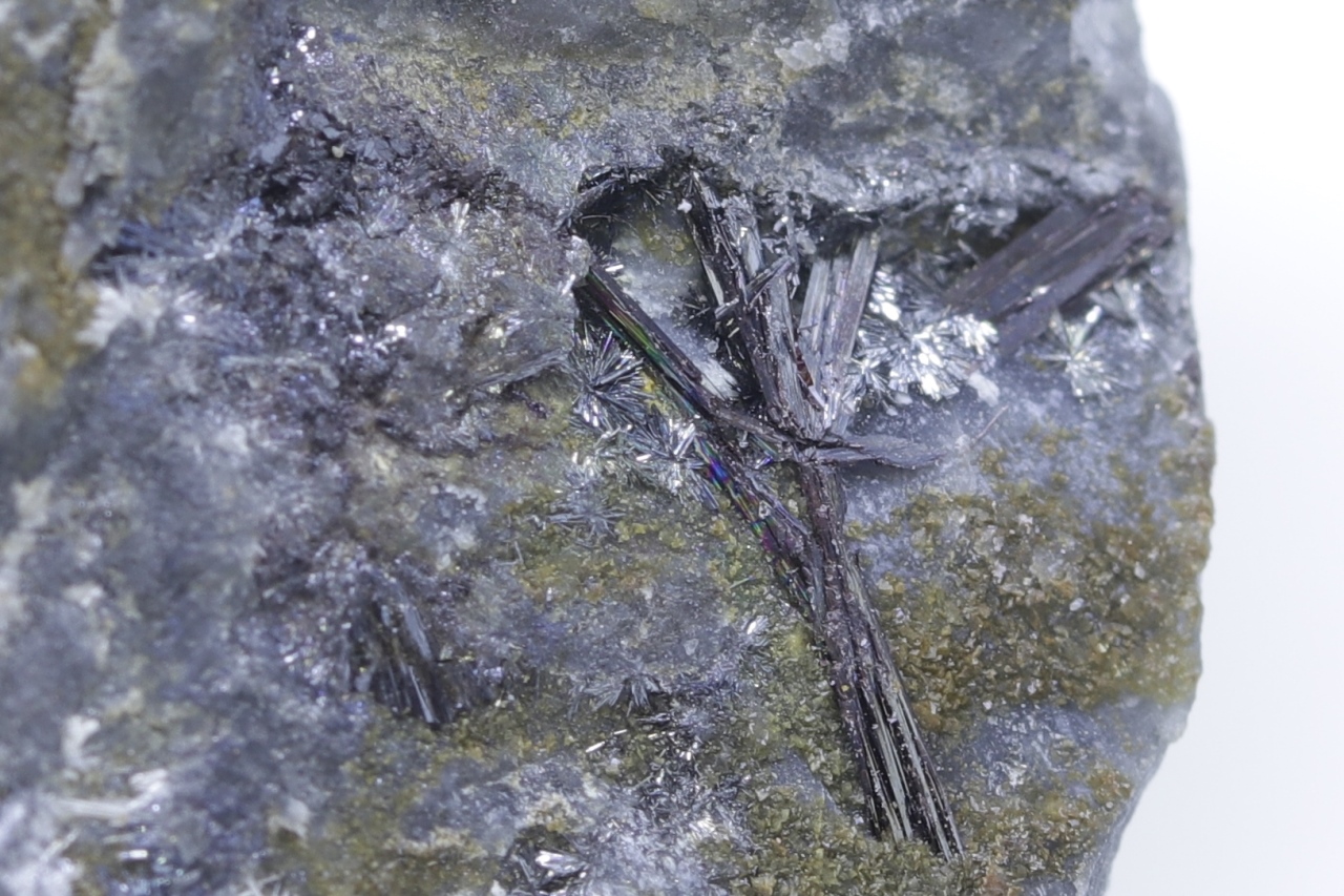 Elongated, dark brown, shiny crystals of the very rare bismuth and iron oxide – Schafarzikite from the type locality.