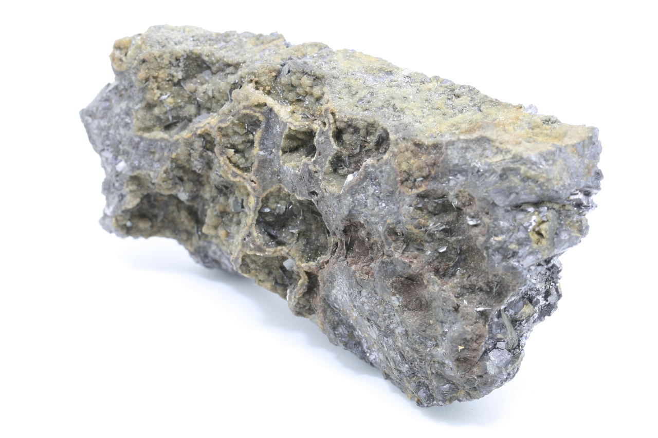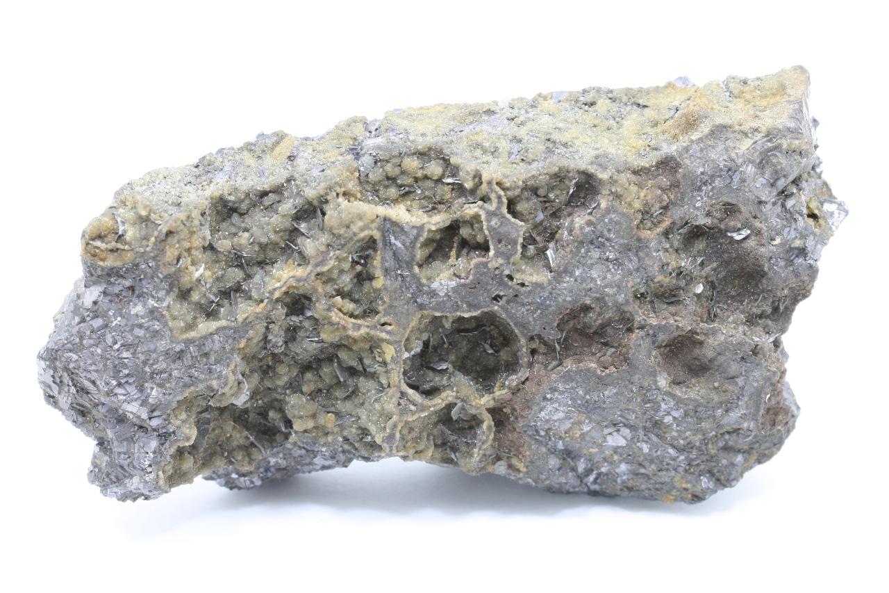 Tabular crystals of black lead and antimonite sulfide. The tables of Semseyite are up to 3 mm large. The sample is glued.