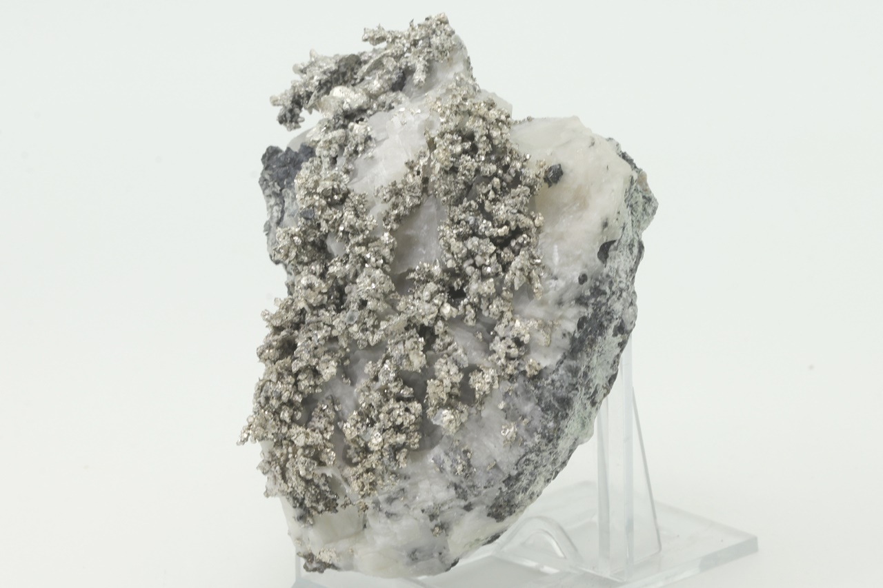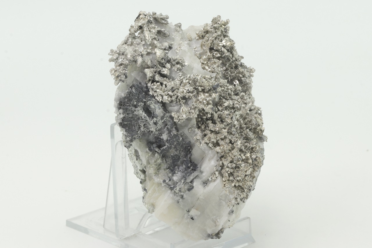 A splendid, rich specimen of well-crystallized native silver, with the most prominent feature being a 3.5 cm large aggregate composed of individual crystals in the top left part of the specimen .