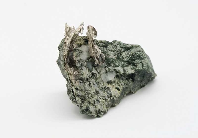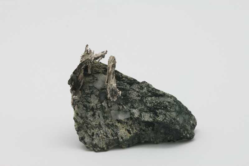 A very nice example of pure silver on a matrix. The sample comes from a classic locality in Morocco. The silver sample is pseudomorphic after dyscrasite. The largest wire is 30 mm long.