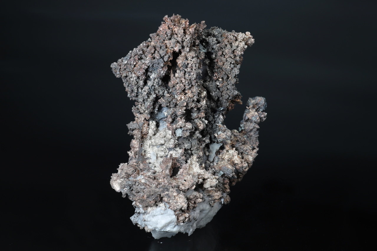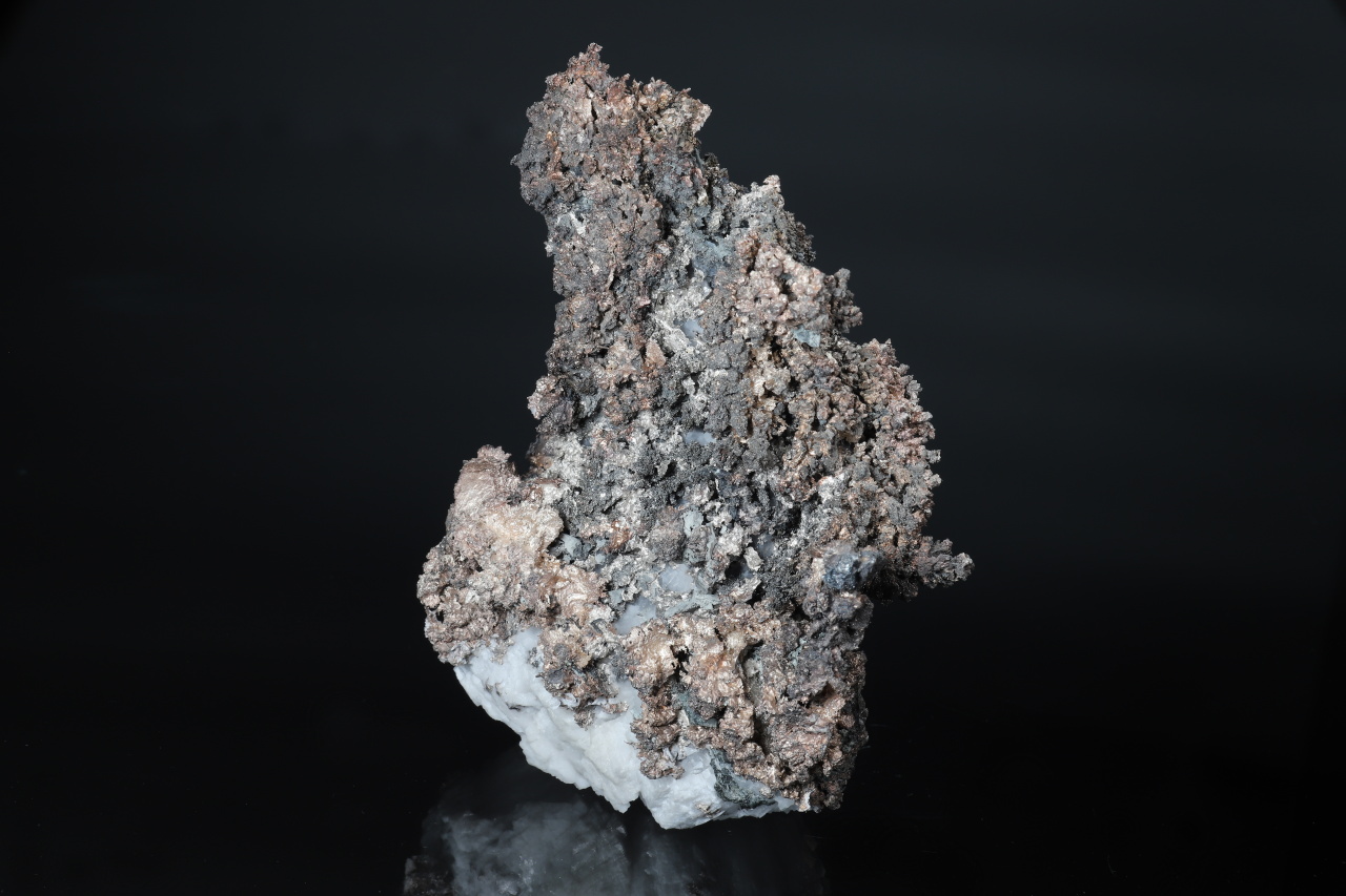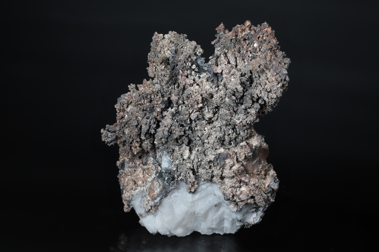 A museum-quality stone representing a high-grade and aesthetic specimen of Moroccan silver. Massive silver aggregates grow on a base of snow-white calcite, featuring crystallization, with the crystals increasing in size from the center of these aggregates outward, and the crystals at the ends of the aggregates are sharply demarcated by well-defined crystal faces.