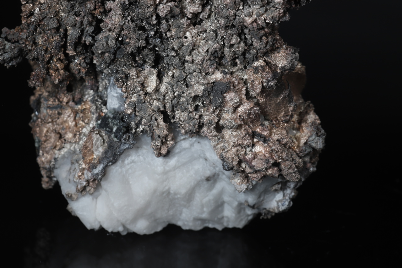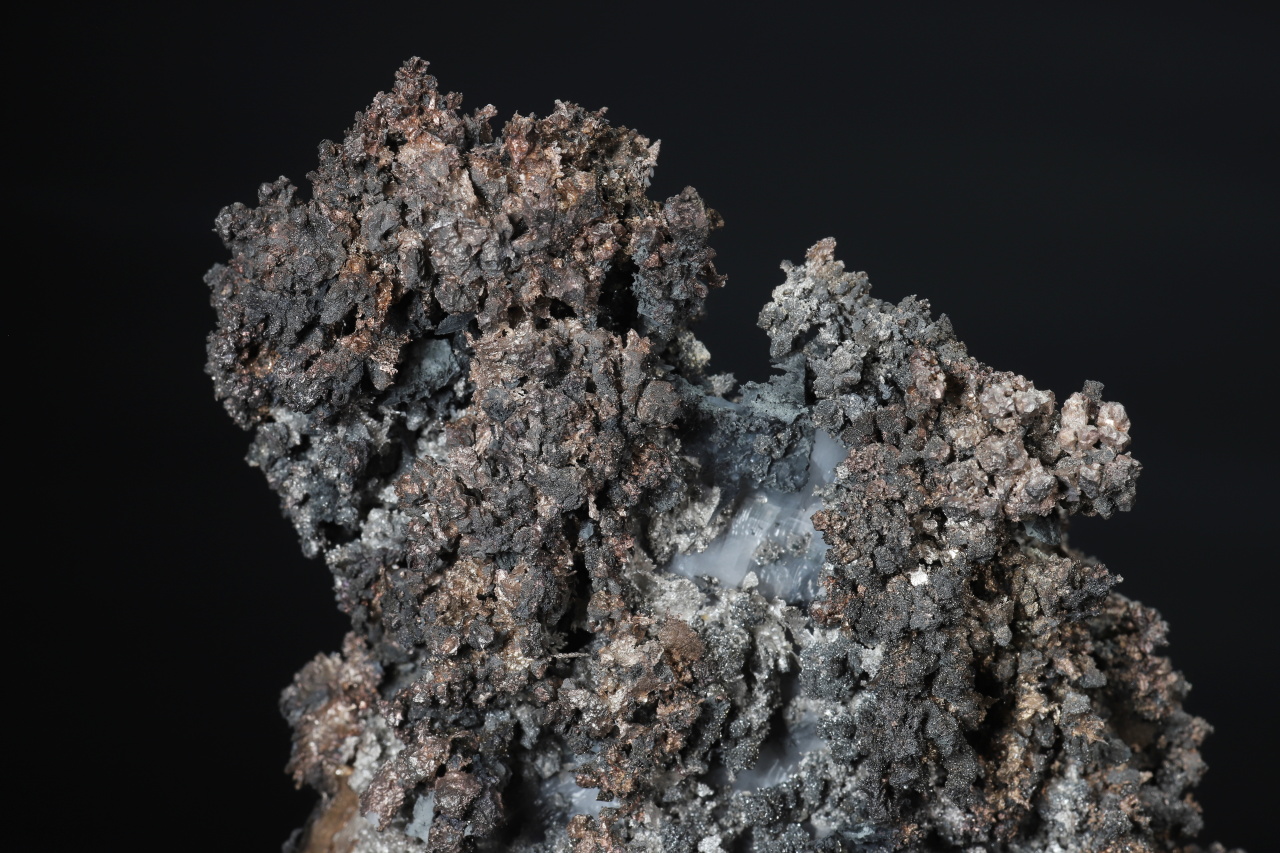 The silver is locally overgrown with finely crystalline black Acanthite.