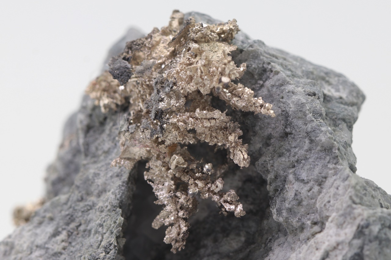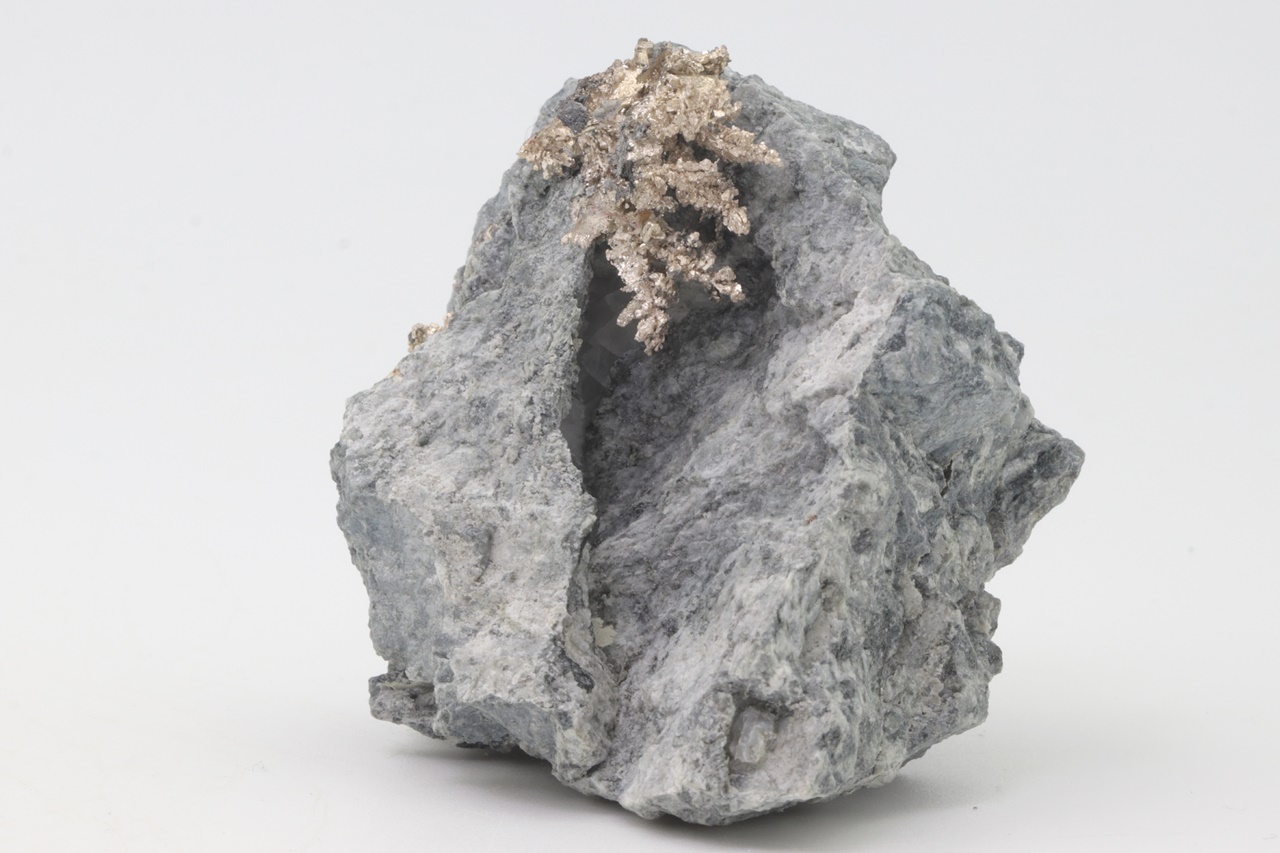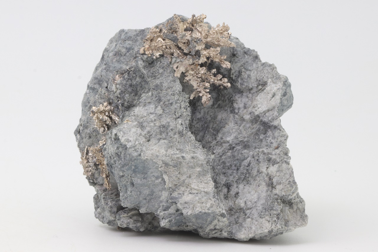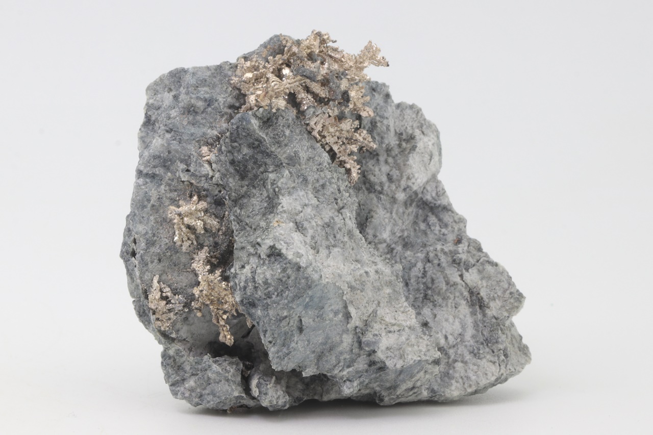 A beautiful specimen of crystallized silver growing in several clusters. The largest silver dendrite is 27 × 27 mm in size.