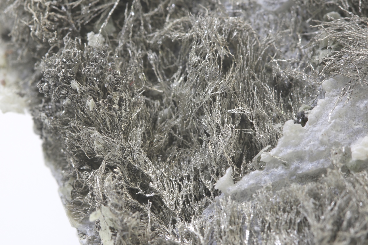A very rich specimen of native silver from the typical and world-famous Moroccan locality Imiter. The silver on this sample forms metallic, steel brownish-gray, wire-like aggregates, which are often arranged in shapes that resemble fans. These aggregates reach sizes of up to… It is a pseudomorphosis after dyscrasite. This sample is a very nice and rich specimen of this element.