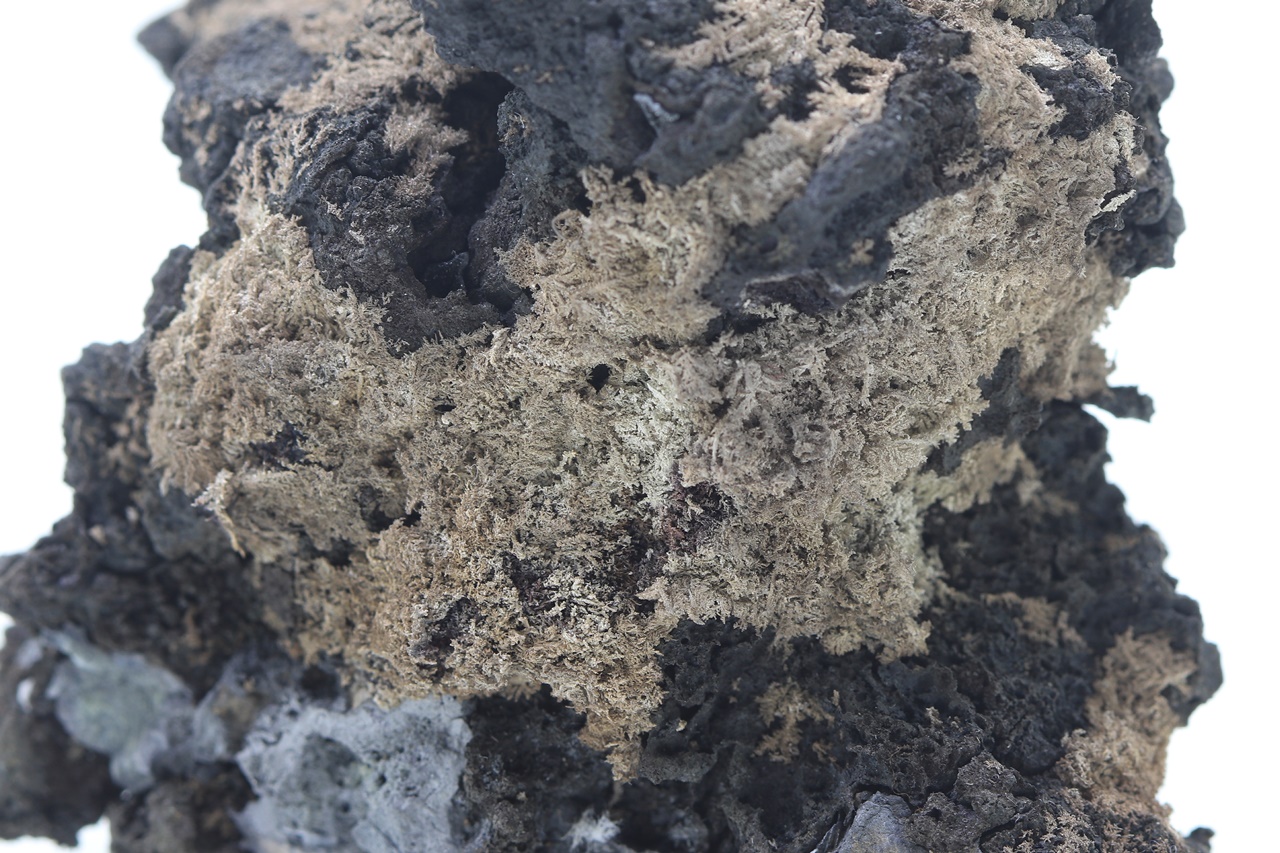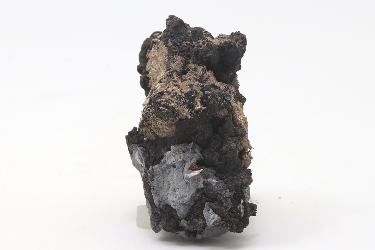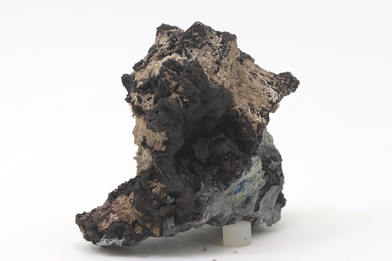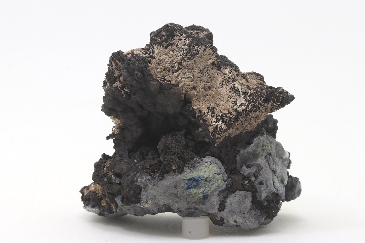 A rich specimen of dendritic aggregates of native silver on black Native Arsenic.
