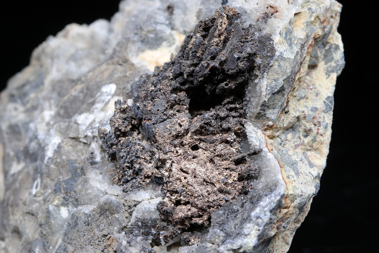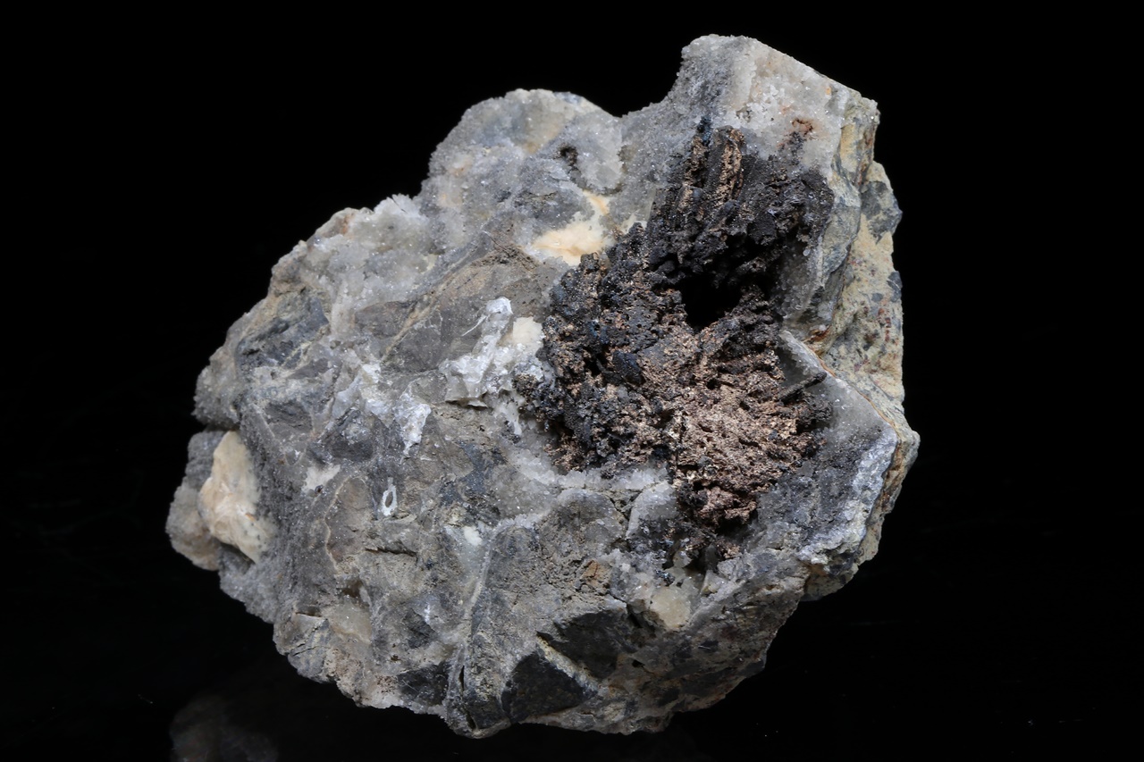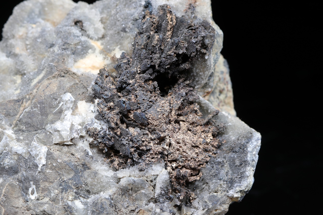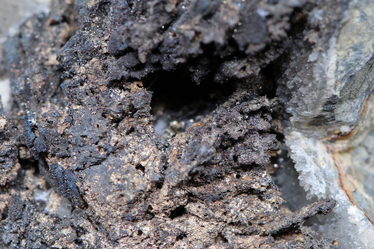 An aggregate of pure silver measuring 3.5 × 2.5 cm grew into a cavity.