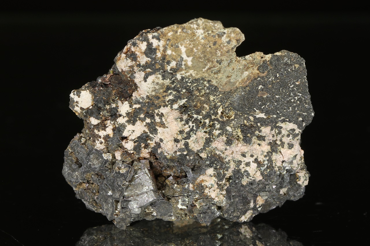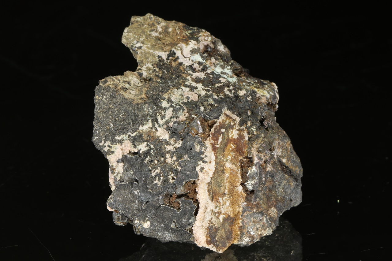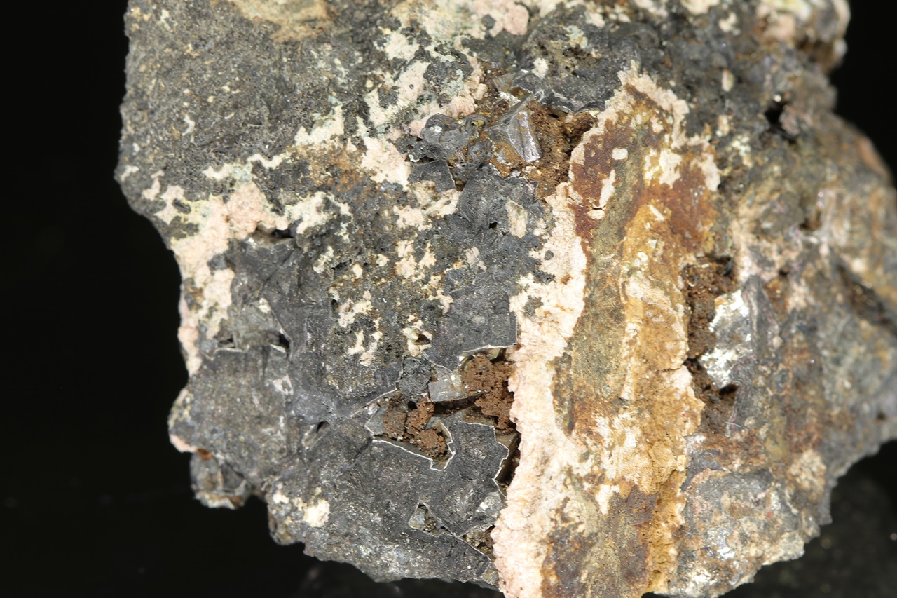 Skutterudite vein with cavities where skutterudite crystal faces and occasionally curls of pure silver with argentite crystal can be observed.