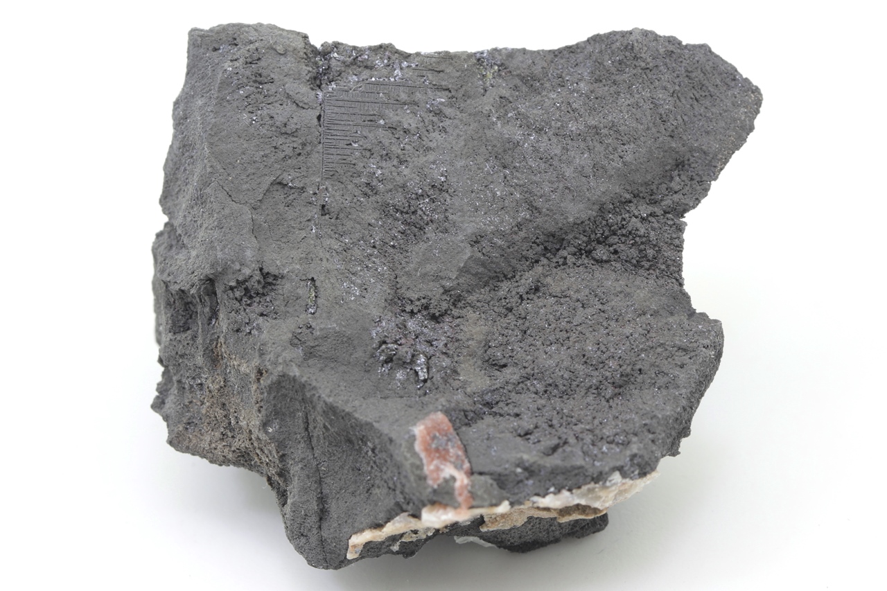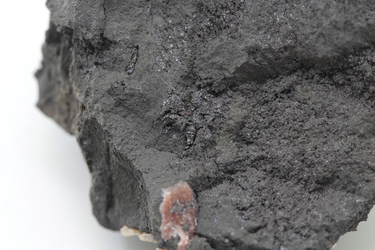 A massive sample of gray-brown arsenic with skeletal structures formed after silver leaching. These structures contain very small, glassy crystals of red proustite. The silver forms very tiny gray-black aggregates growing on the arsenic. This sample is atypical for this shaft, but very similar to the paragenesis found on the 5th floor of the Svornost mine.