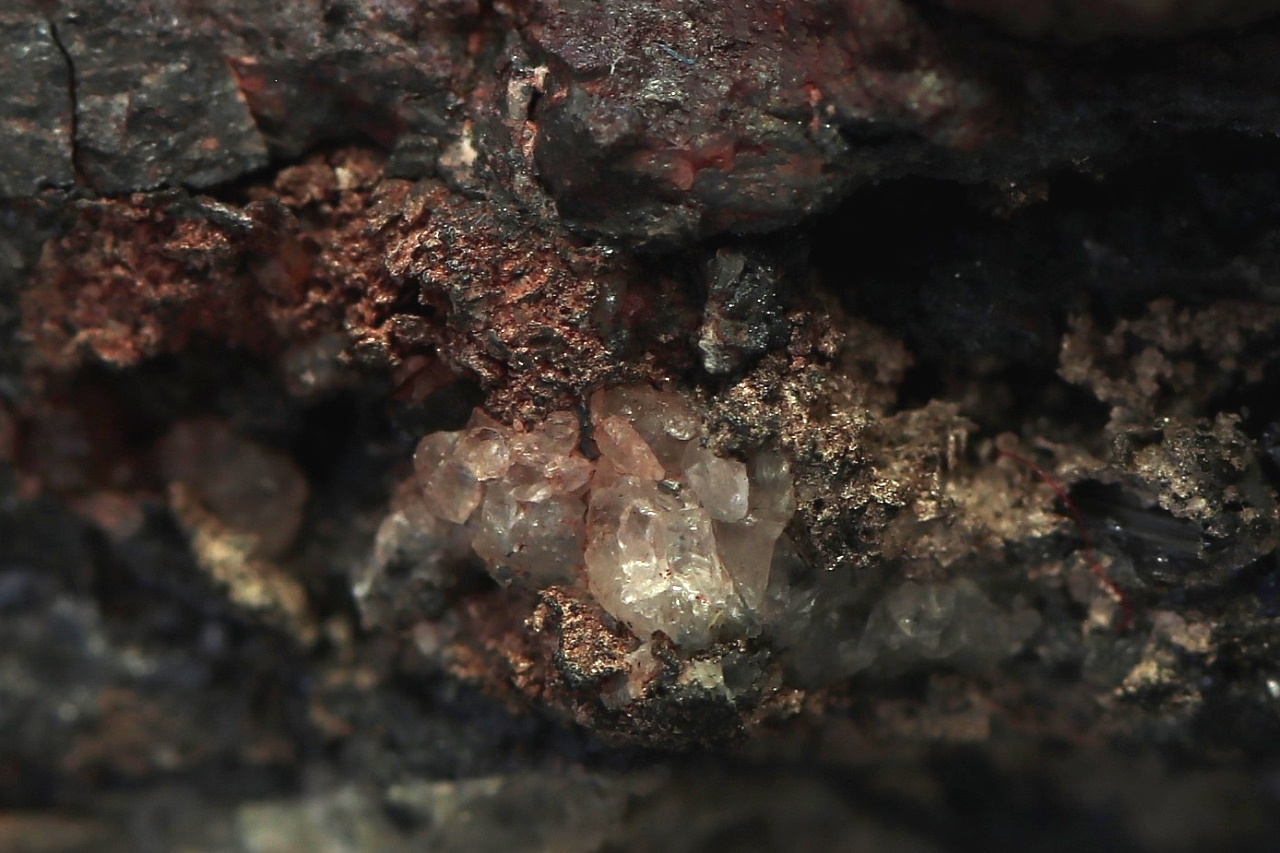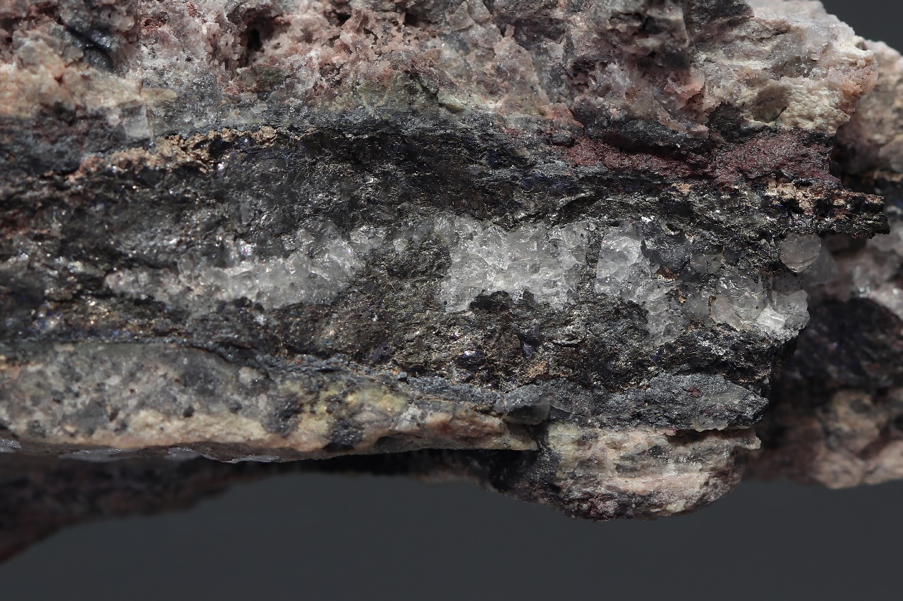 Up to 1 cm wide vein filled with pure silver and black, metallic lustrous chalcocite.