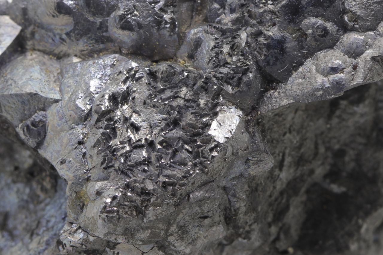 Specimen with highly lustrous, “melted” octahedral skutterudite crystals ending into a cavity .