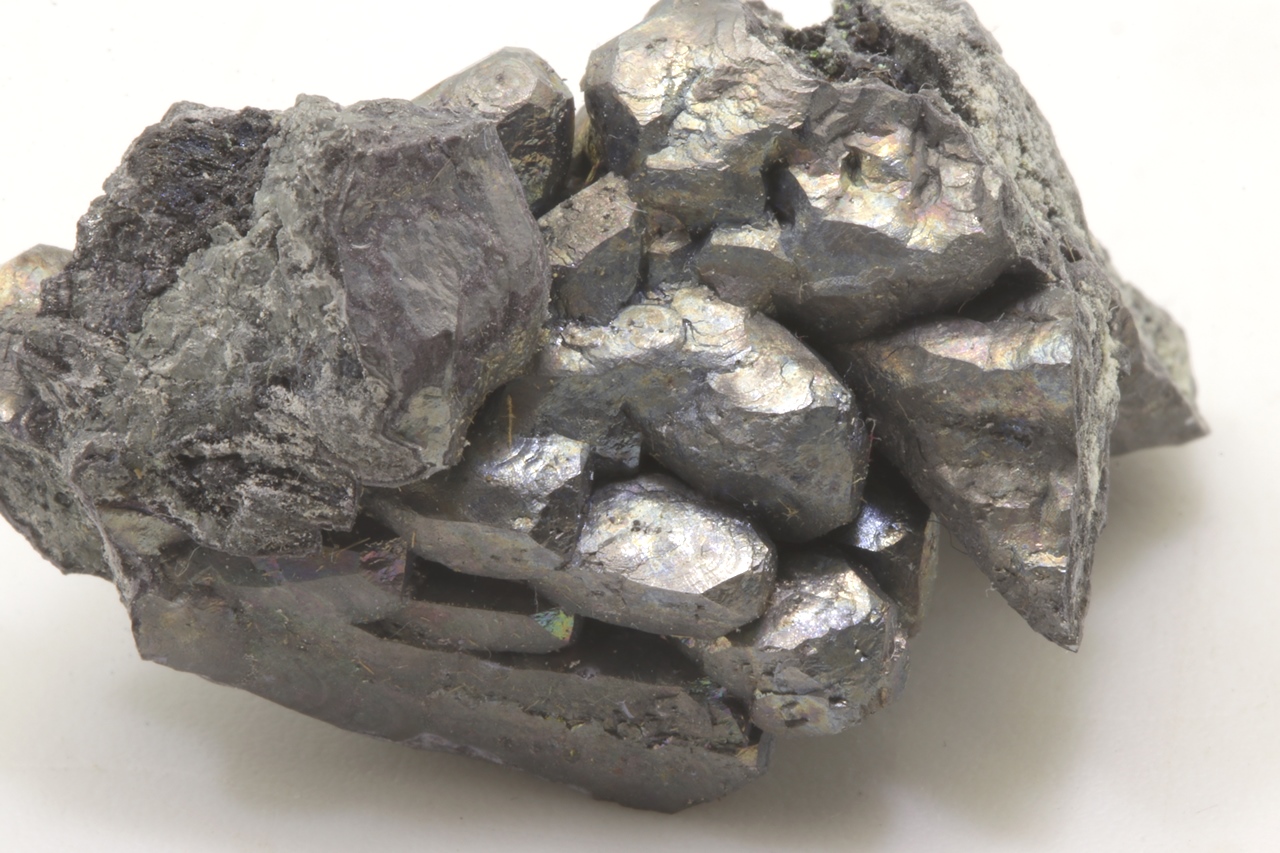 Skutterudit forms metallic, steel-gray, elongated crystals that intergrow with each other and also form aggregates. The longest crystals reach a size of up to 1.5 cm. This is a nice specimen of this mineral from the historic Czech locality Měděnec, Czech Republic.