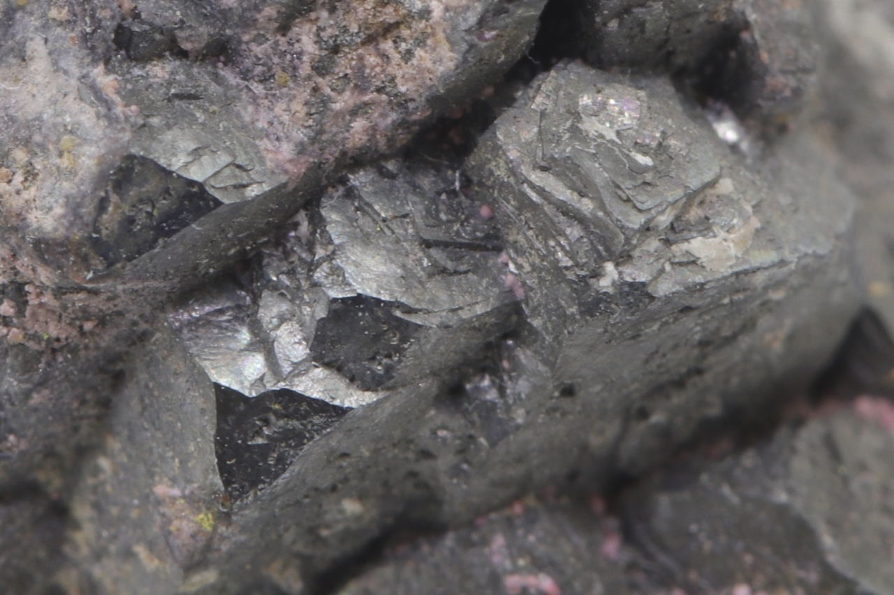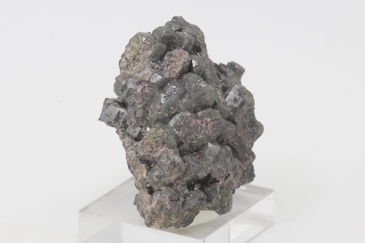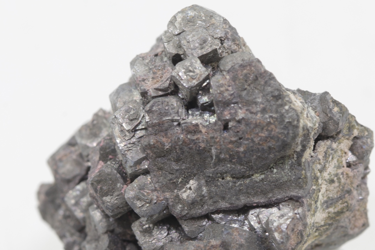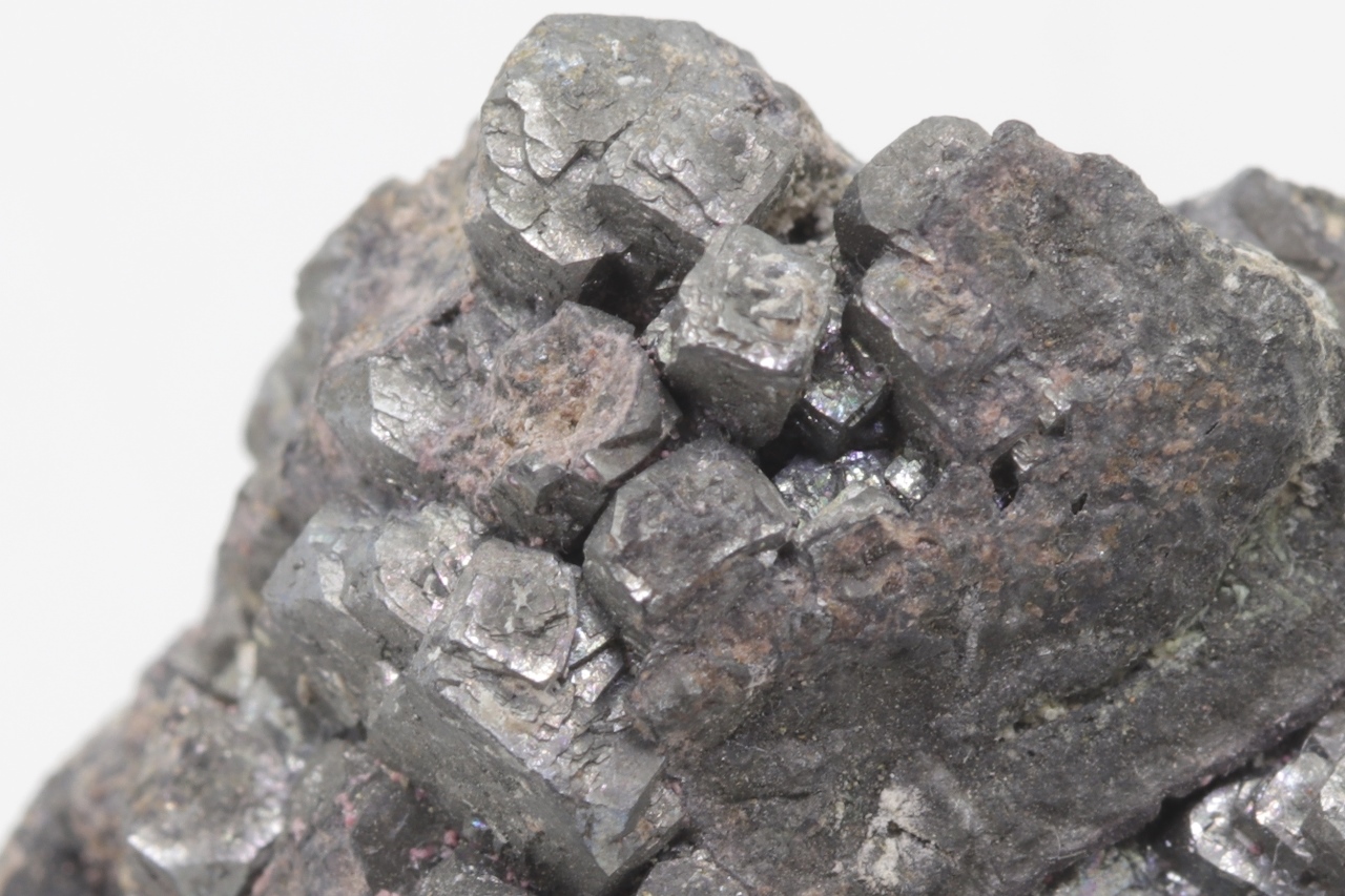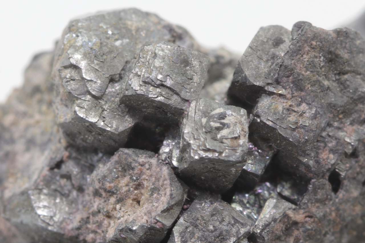 Cubic crystal cluster of metallic lustrous Skutterudite. The largest crystal is 4 mm.