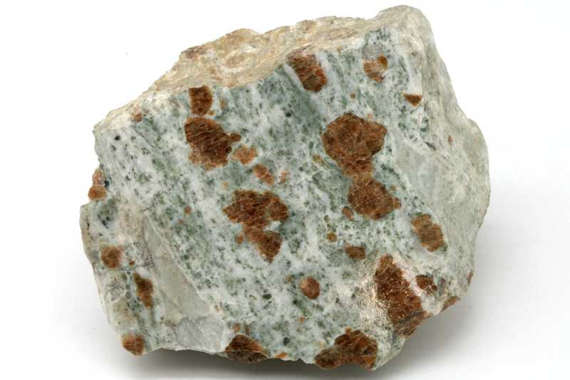 A sample of metamorphosed rock formed by a diverse range of minerals, which will beautifully stand out after the rock is polished. A sample of contact metamorphosed rock – known as skarn – which is composed of bluish calcite, red aggregates of garnet, grass-green aggregates of epidote, and white aggregates of wollastonite .