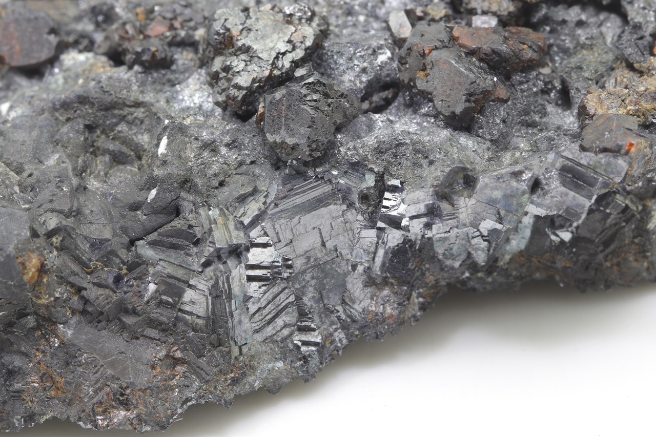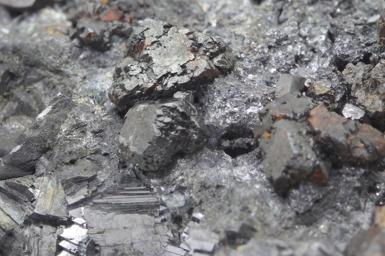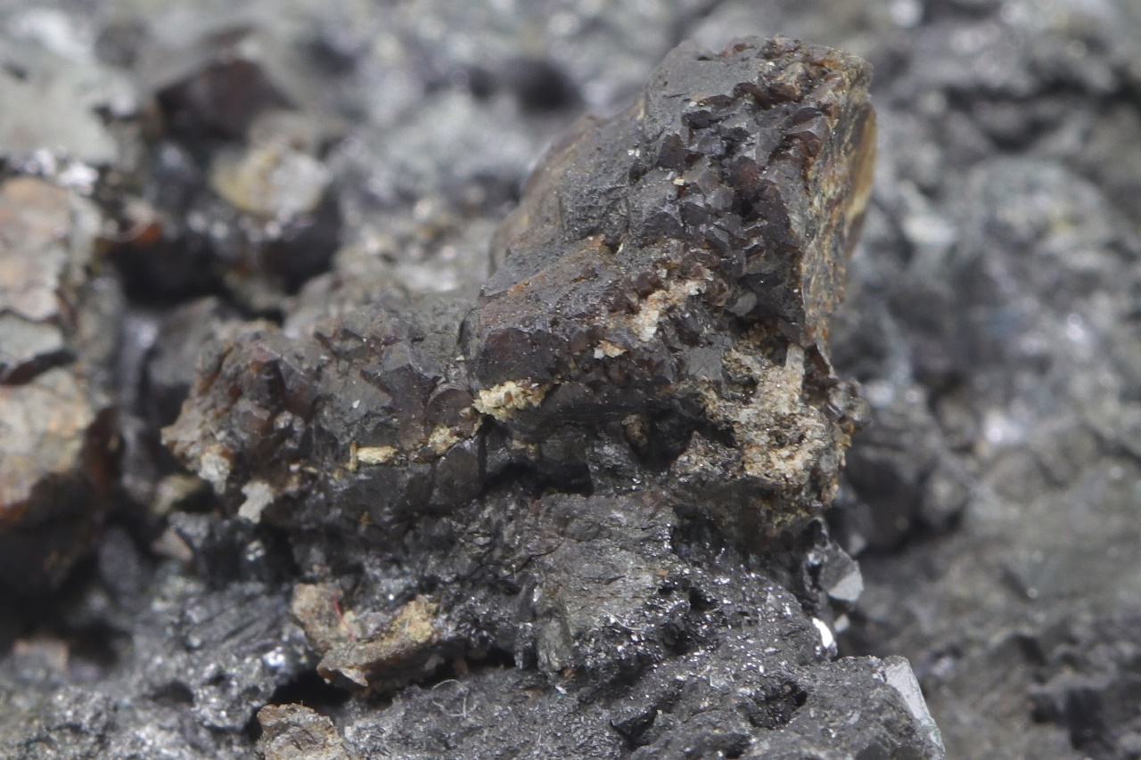 Gray crystals of Galena covered with up to 7 mm large, dark brown crystals of Sphalerite.