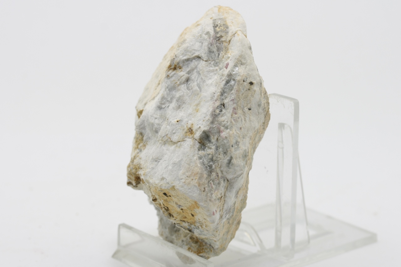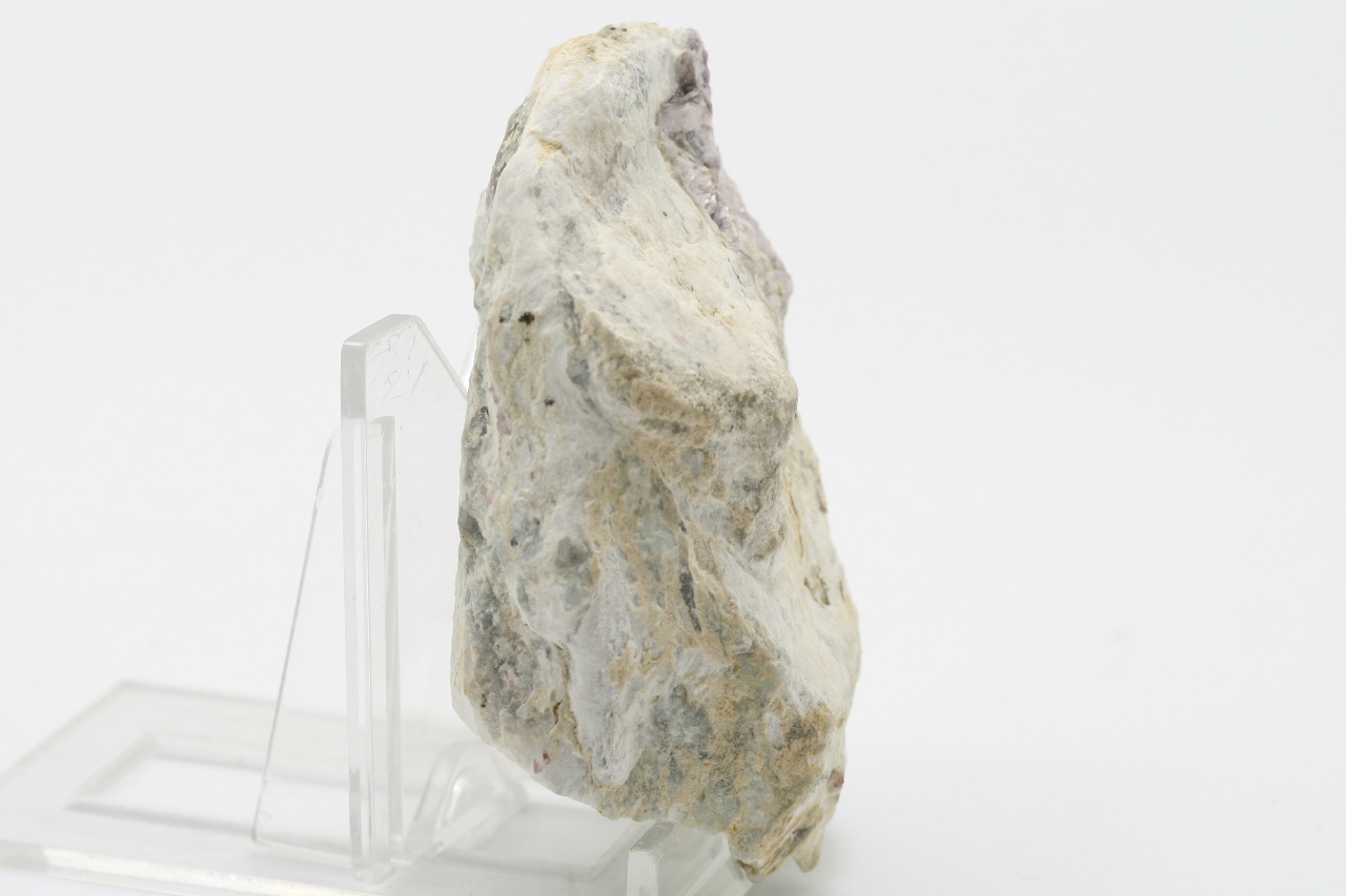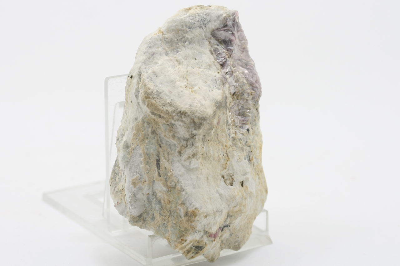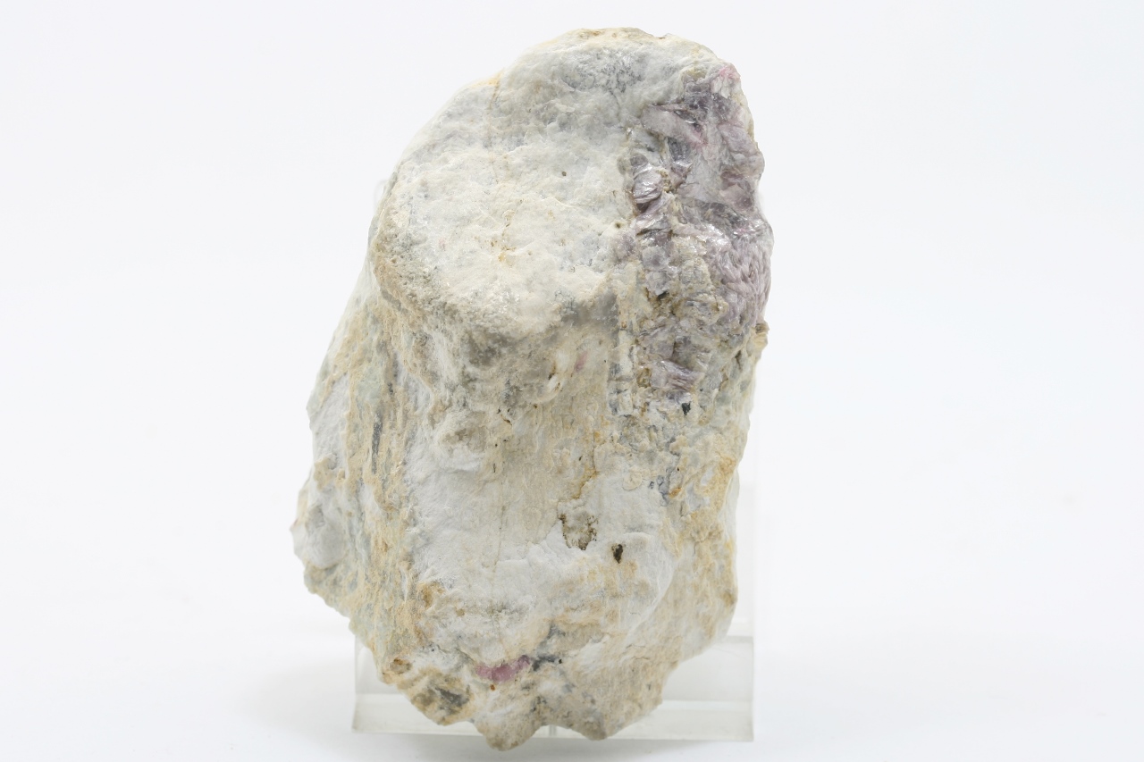 Large chalk-white lithic pyroxene with a light pink scaly mica aggregate.