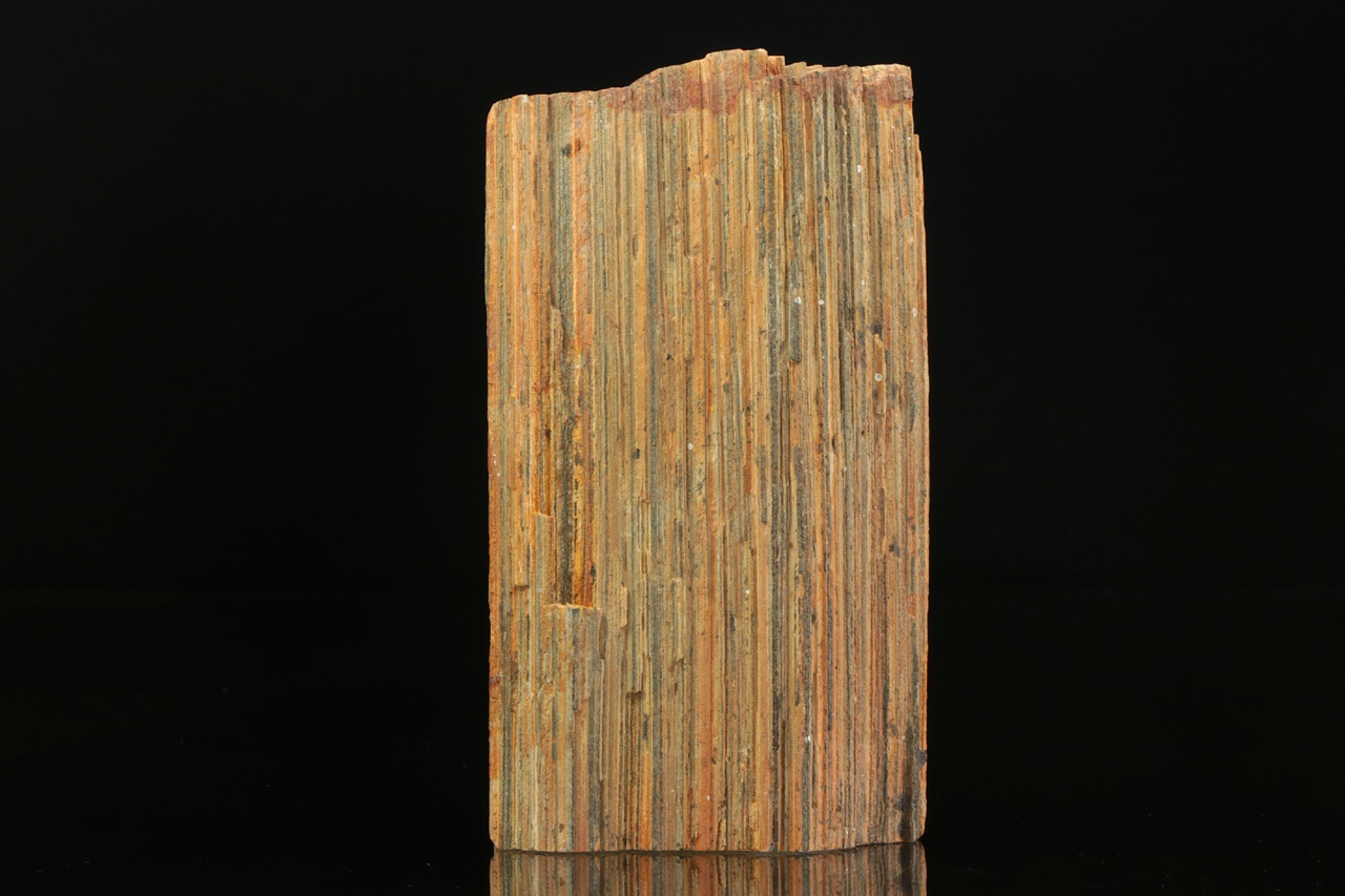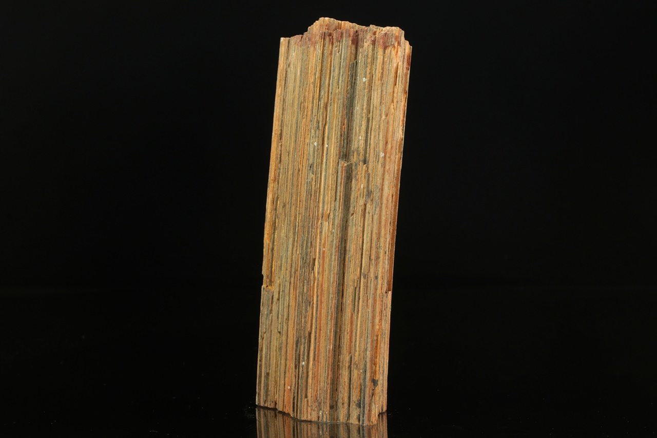 Ukázka nezvyklé, mezi petrology velmi známé ortoruly s výraznou lineací z Doubravčan. Vzorek je ze spodu seřízlý.