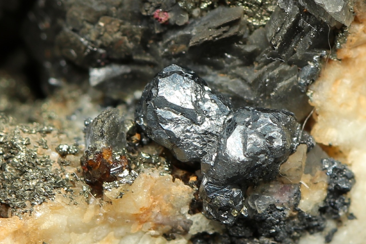 Siderite vein material with Ni and Co ores with a cavity measuring 2 × 1.5 cm, in which several stefanite crystals up to 3 mm in size have grown.