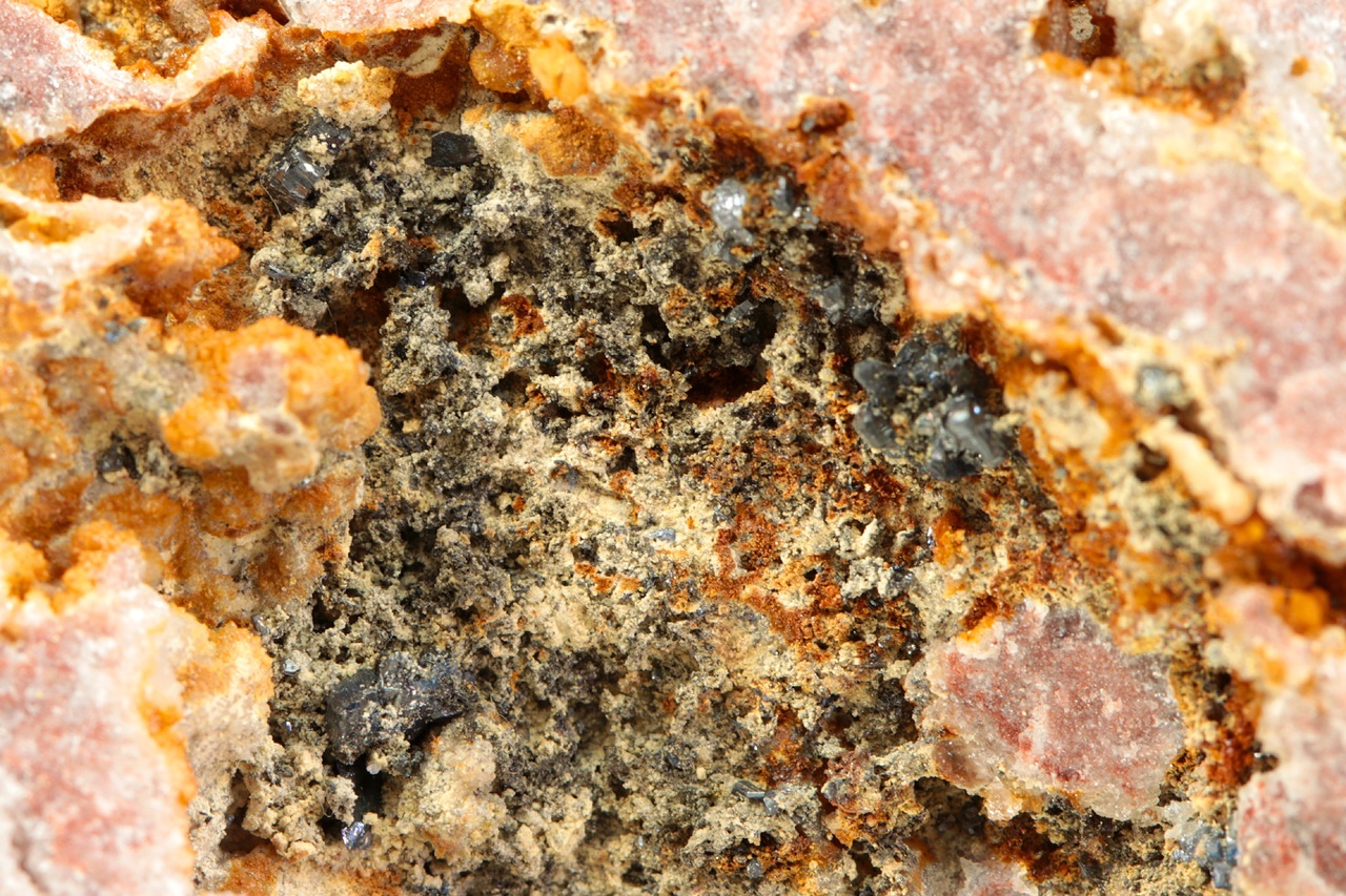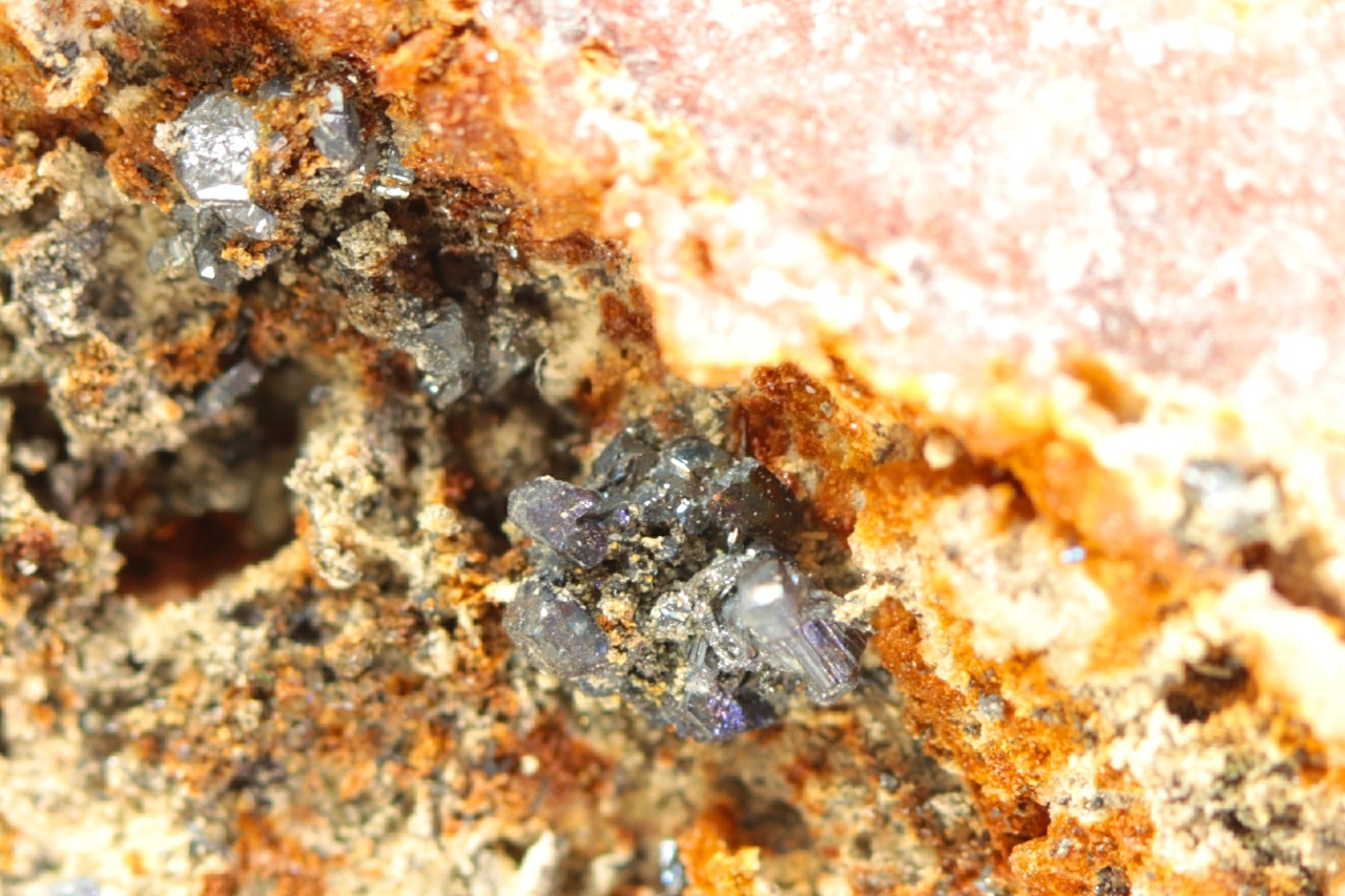 Cluster of metallic luster crystals of stefanite. The largest cluster is 3 mm in size.