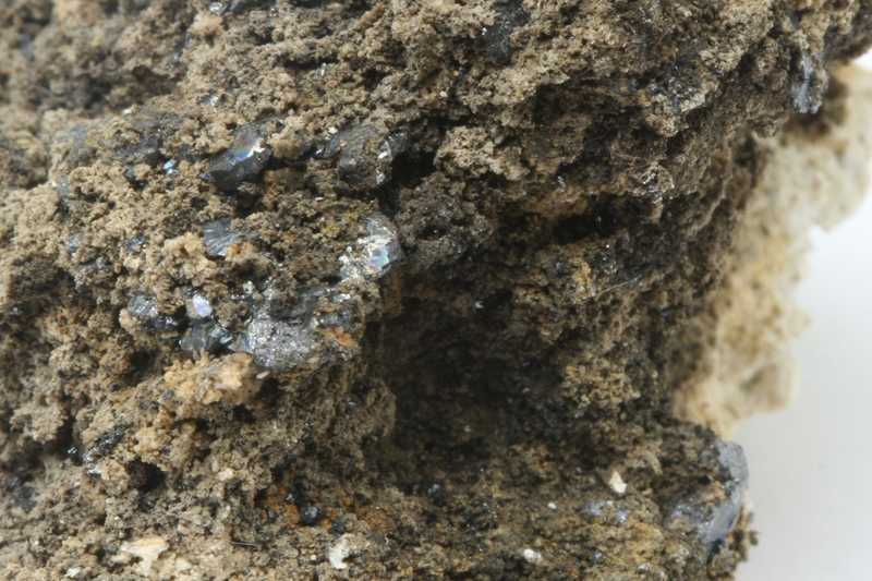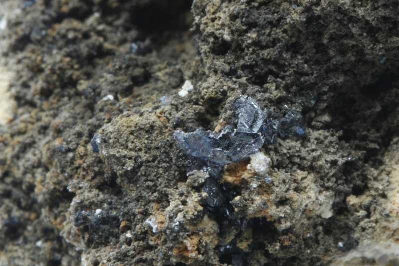 Specimen of silver sulfide from Jáchymov. Plate-like aggregates of stefanite up to 10 mm in size.