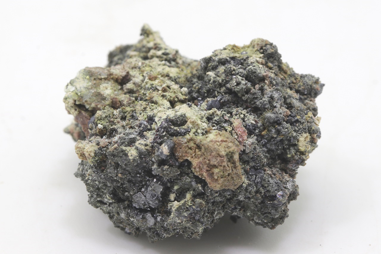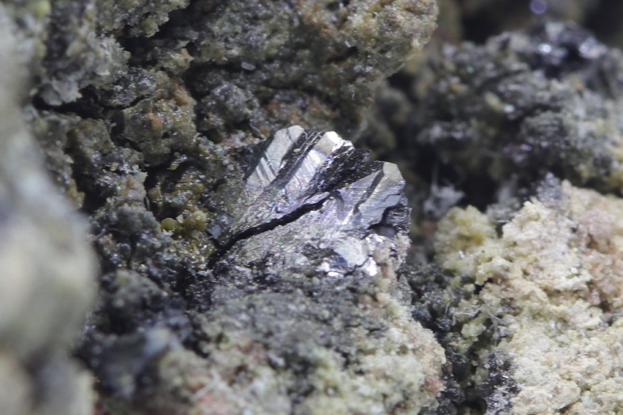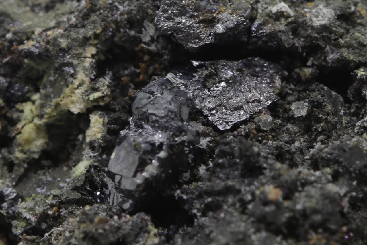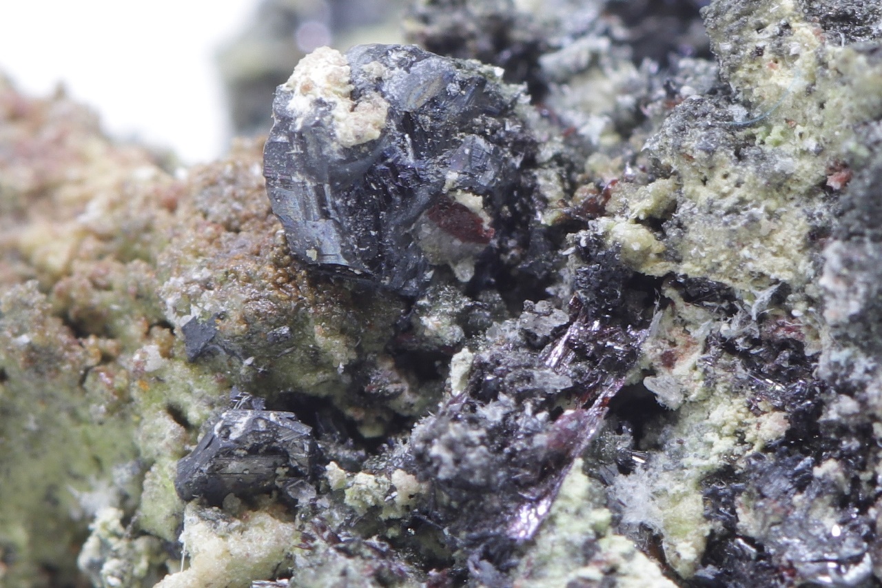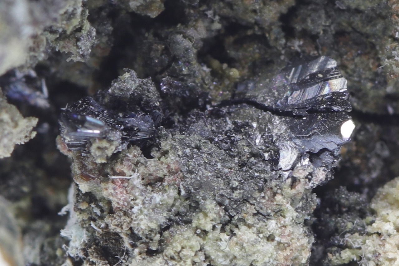 Specimen sprinkled with several stefanite crystals, the largest of which is 5 mm big.