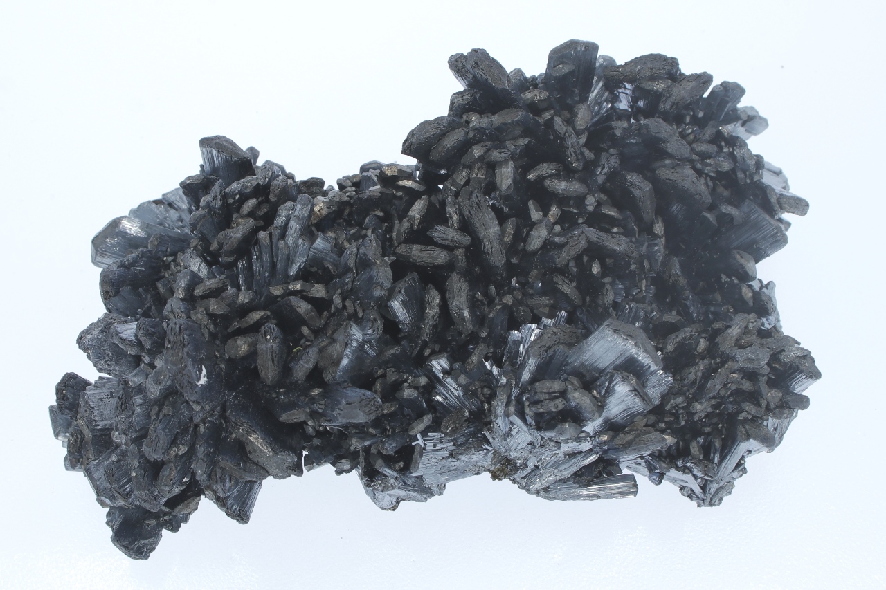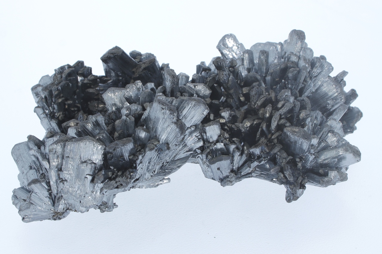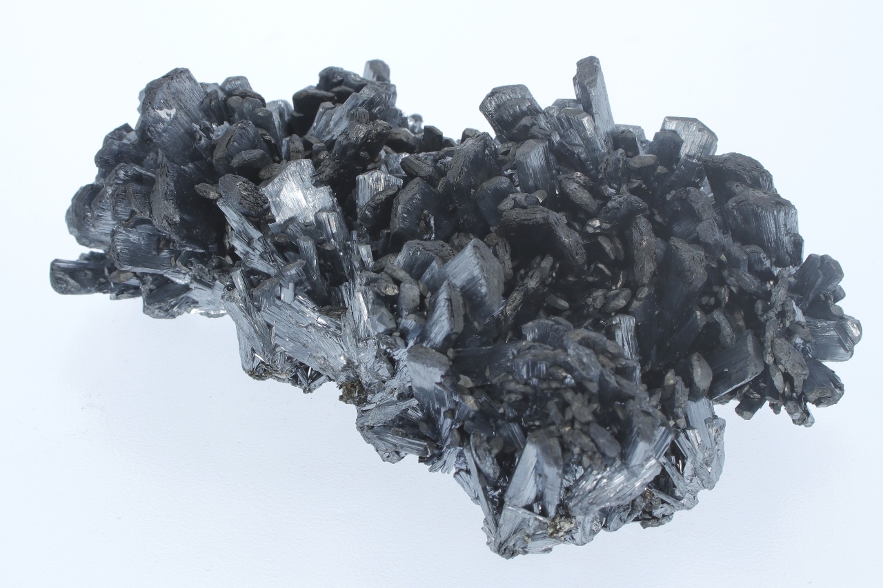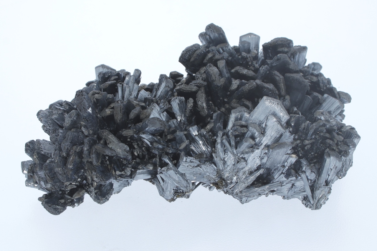 A magnificent specimen of very shiny antimony crystals intergrown from a classic Romanian location. The largest crystals are 2 cm in size.