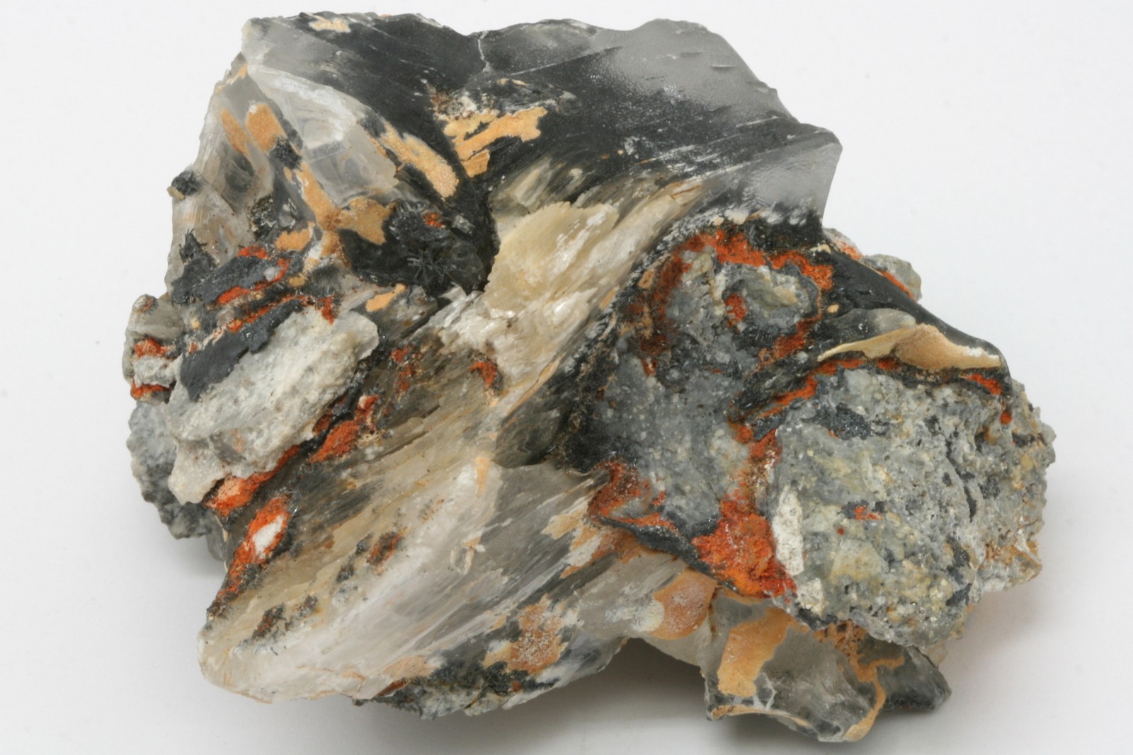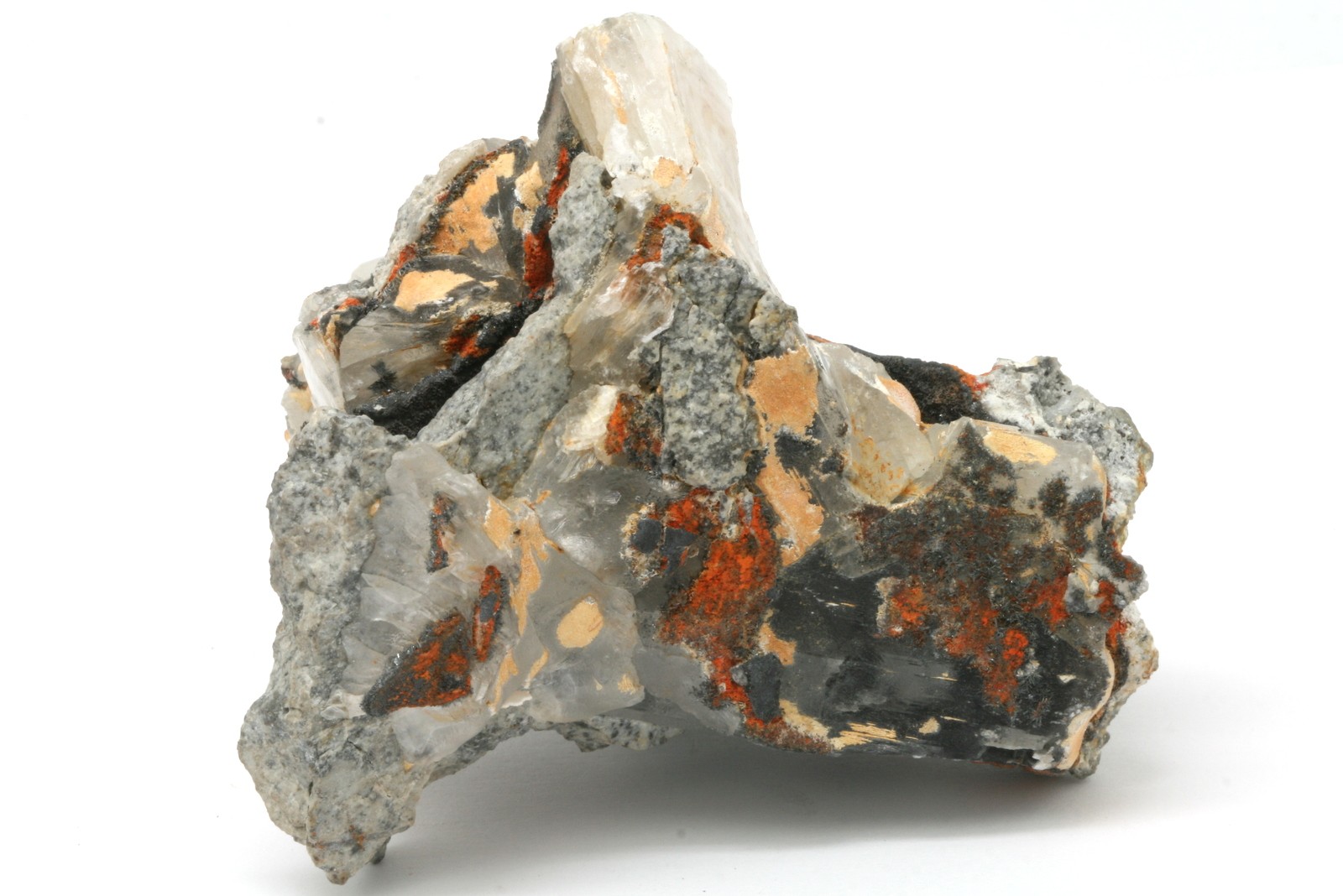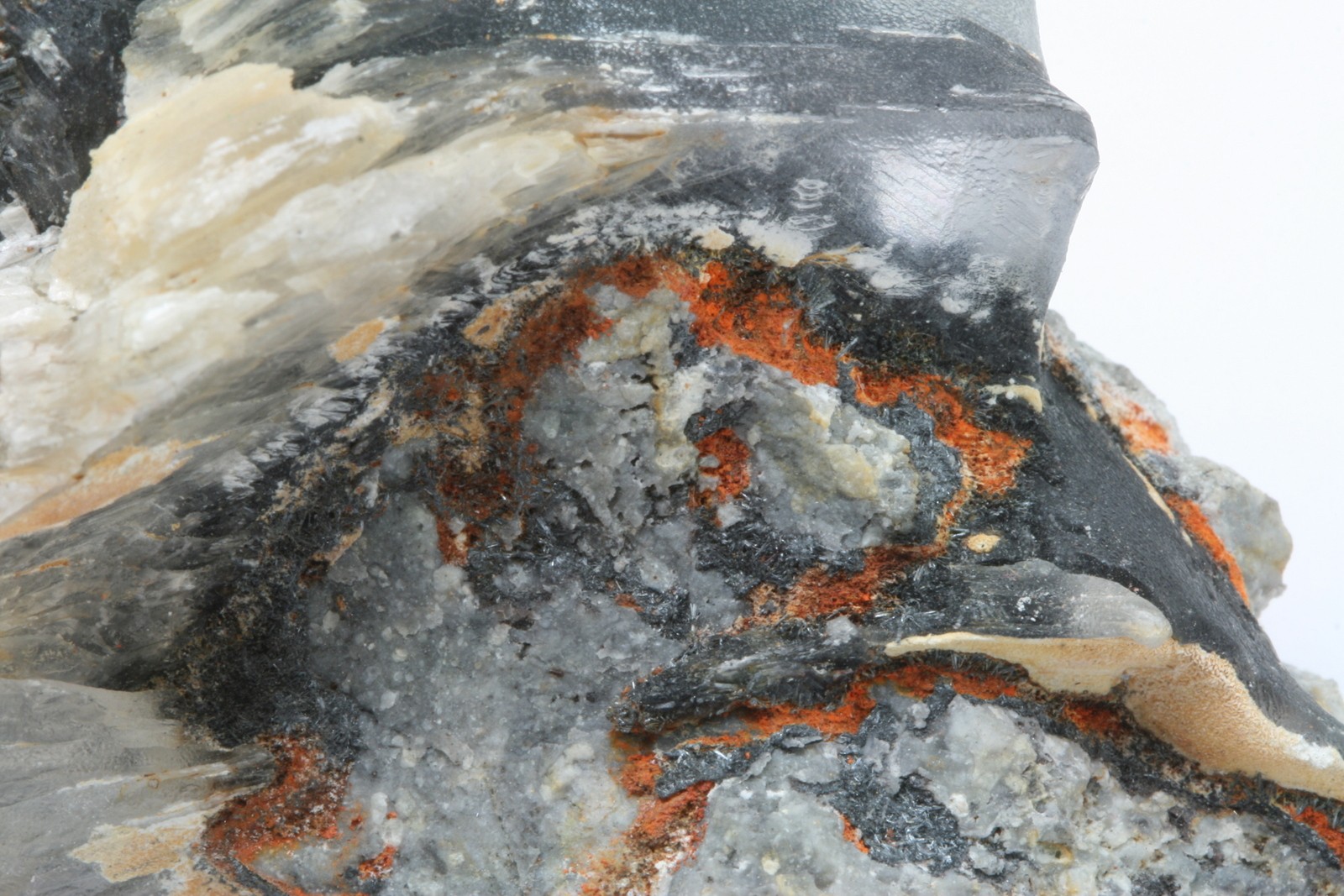 An interesting example of stibnite encased in gypsum from the Palomi mine, Peru.