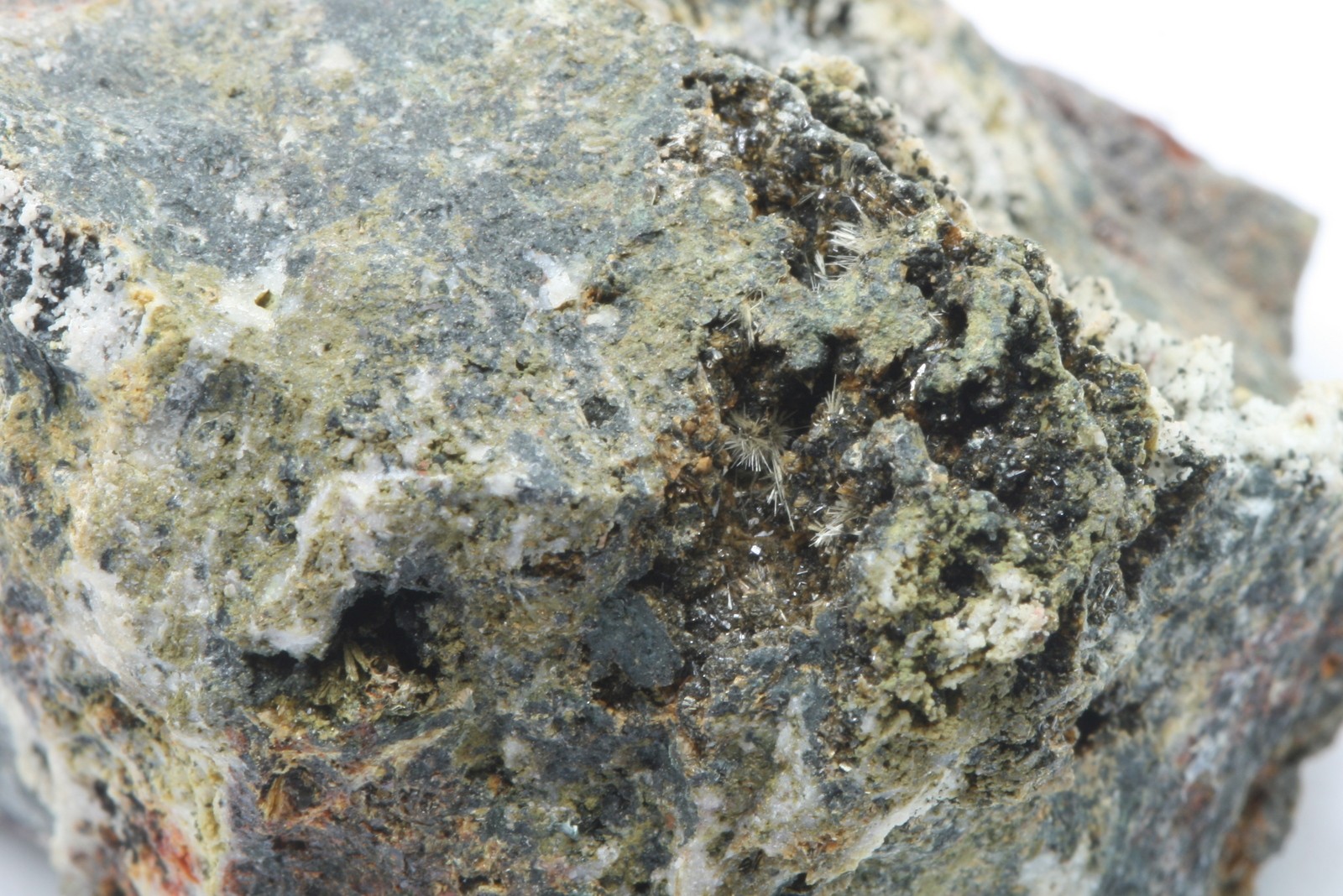 Sample of aggregates of manganese and iron phosphate strunzite and brown crystals of Laueite