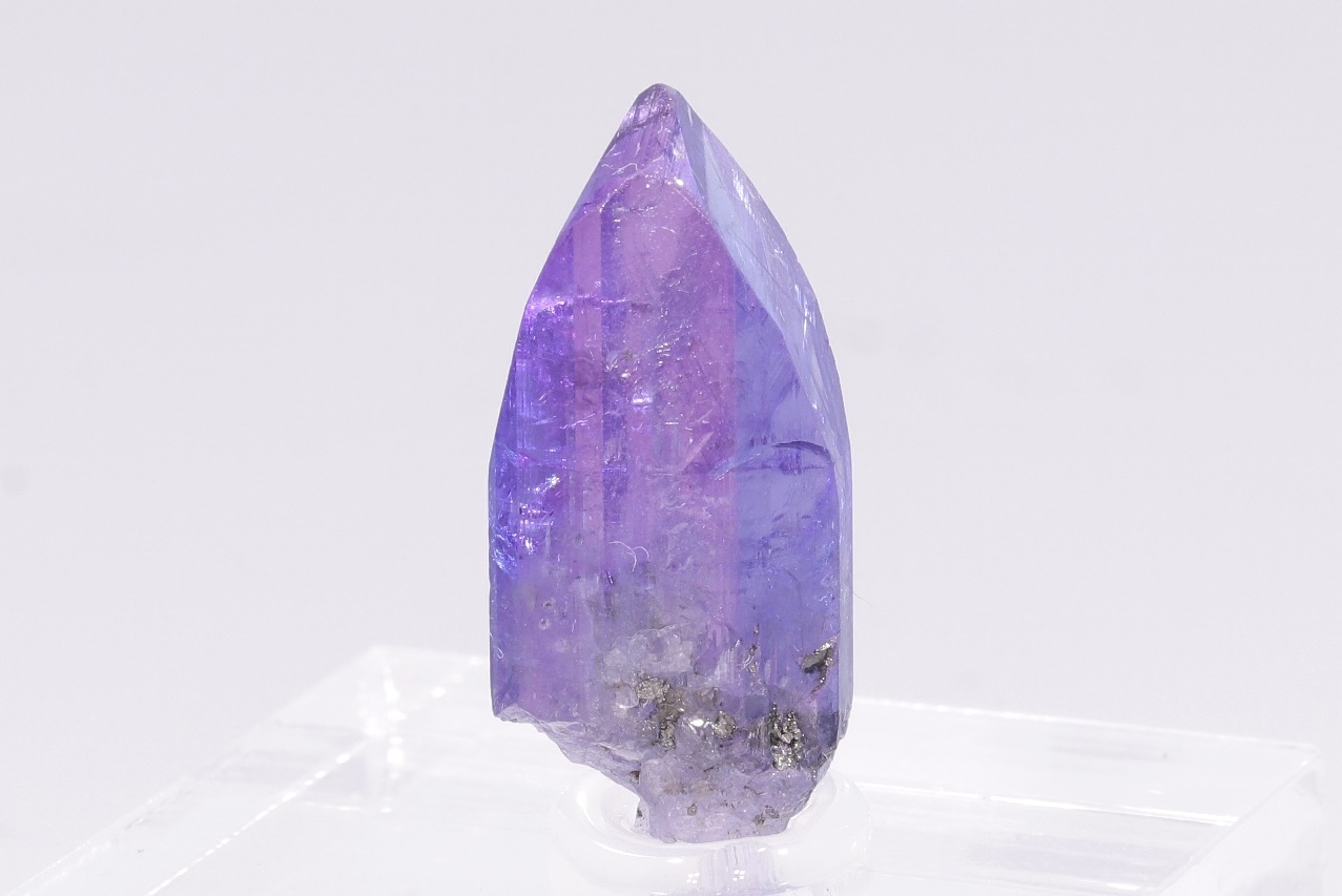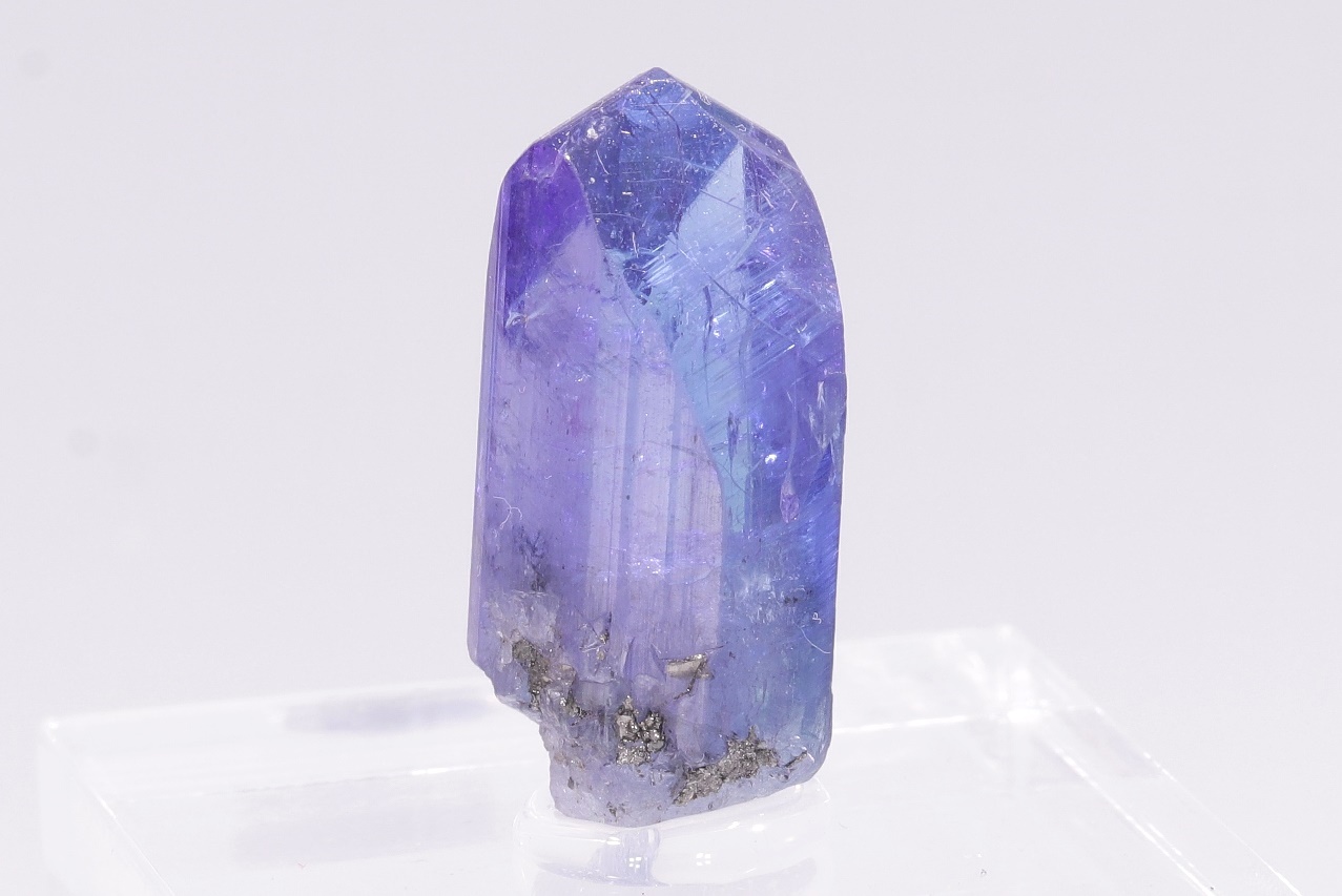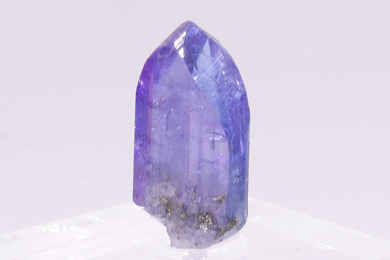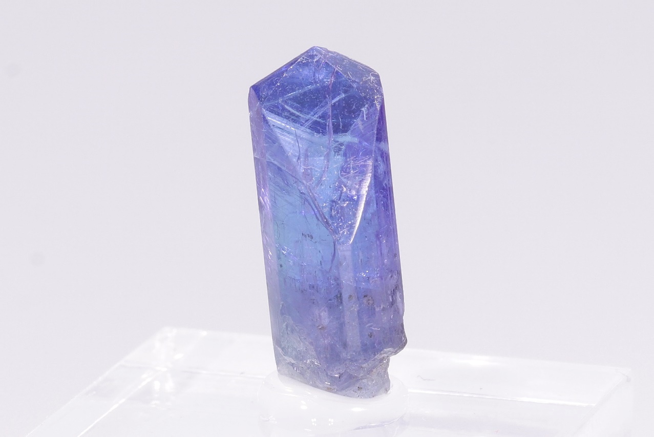 A beautiful specimen of a highly lustrous, well-defined tanzanite crystal weighing 2.9 g. This gem-quality crystal stands out for its striking color change from blue to purple.