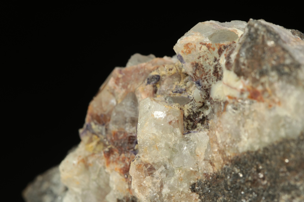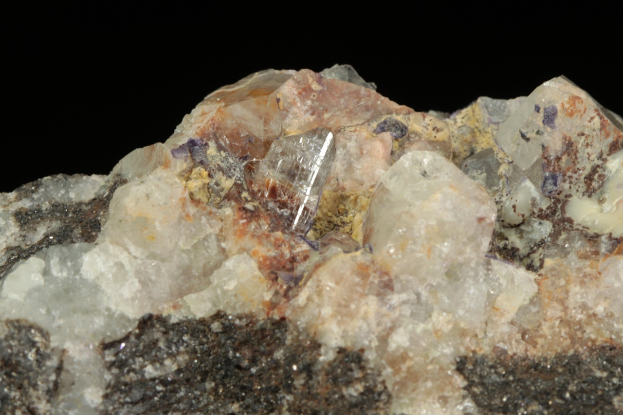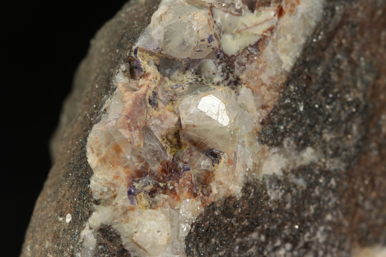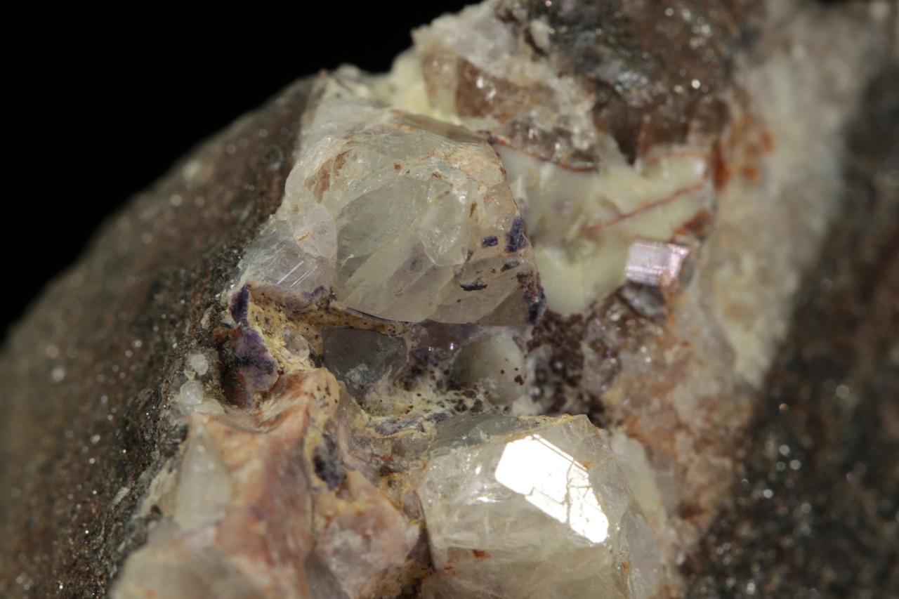 Crystals of clear topaz grown into a cavity. The largest topaz crystal is 8 mm in size.
