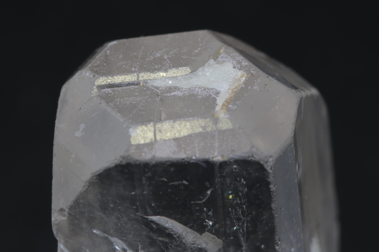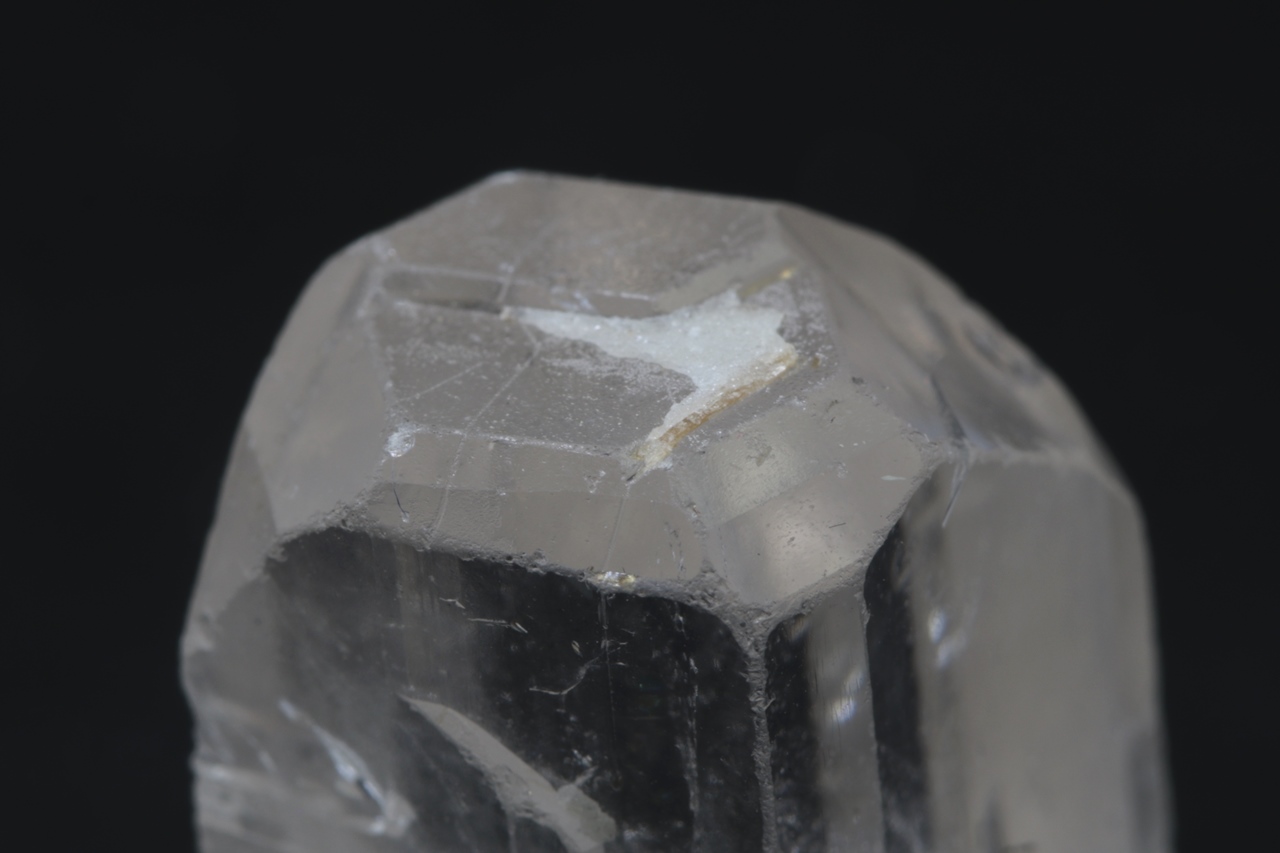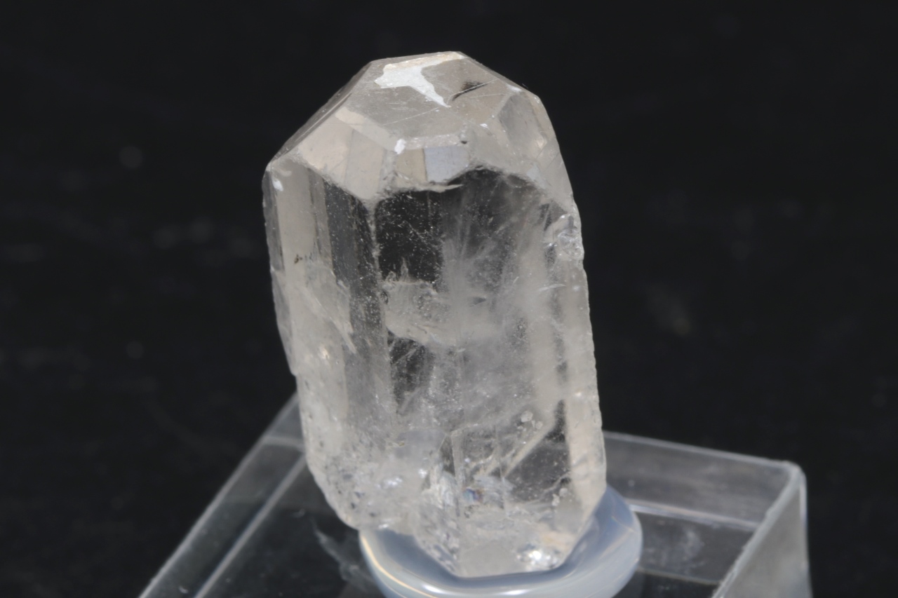 A transparent crystal of slightly yellowish topaz with well-defined, shiny crystal faces.