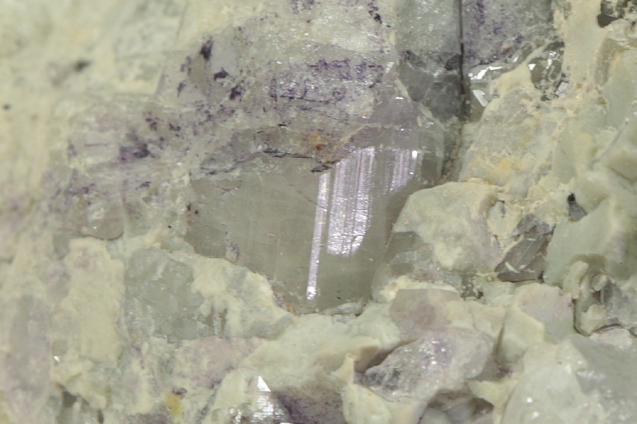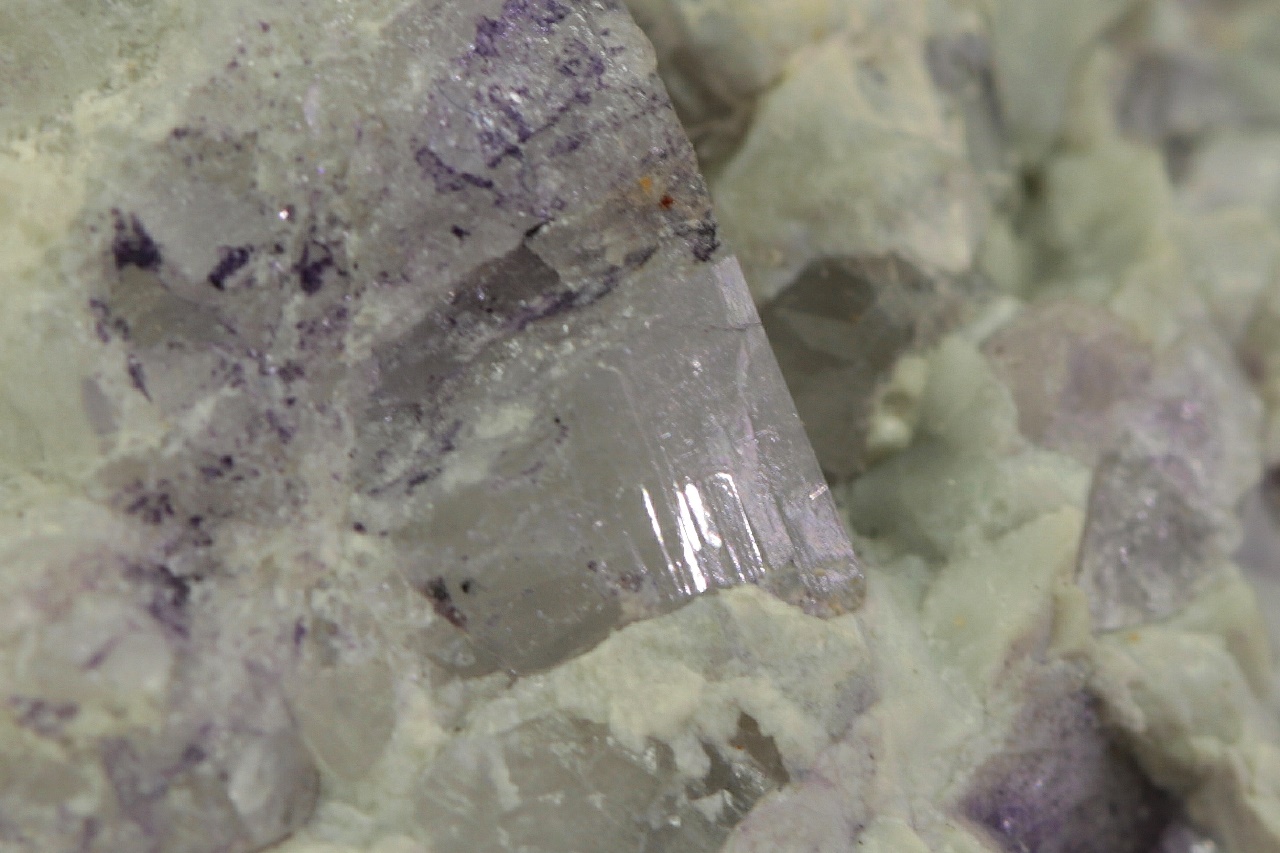 Specimen consisting of massive topaz, where the shiny prismatic faces of one crystal stand out. The size of the crystal is 8 mm.