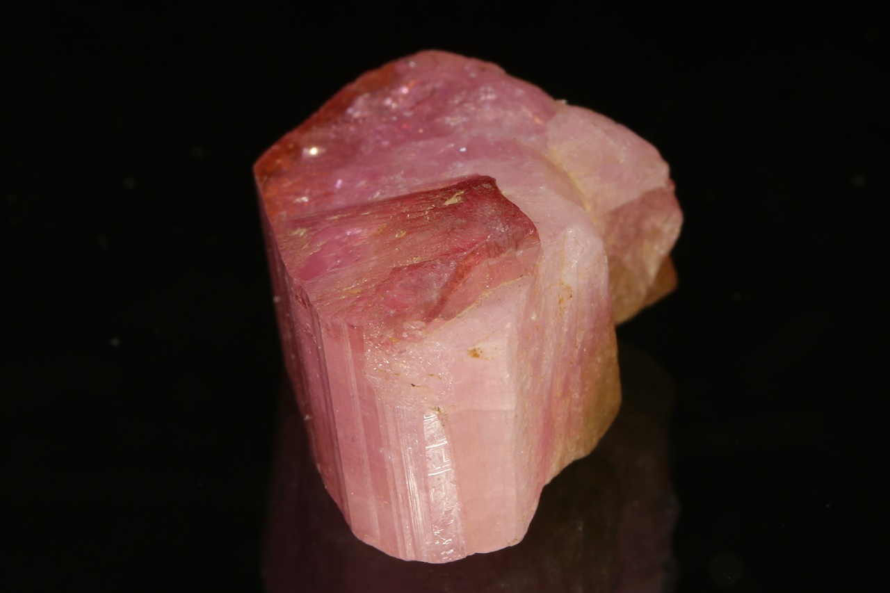 Pale pink tourmaline terminated by crystal faces from the front and back.