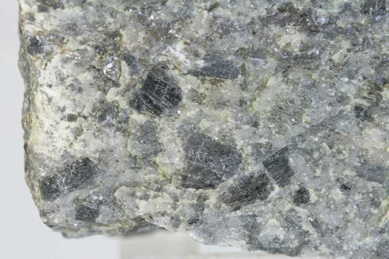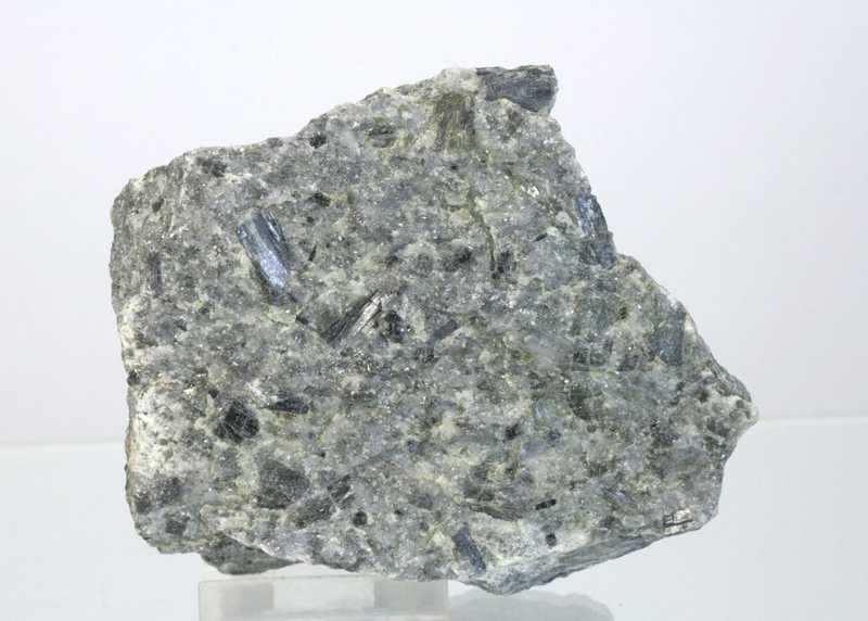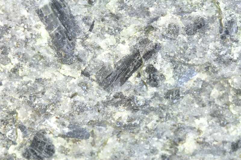 Sample of tremolite amphibole in marble from Olešnice. Nice sample of several gray-blue acicular crystals of tremolite growing into the parent rock.