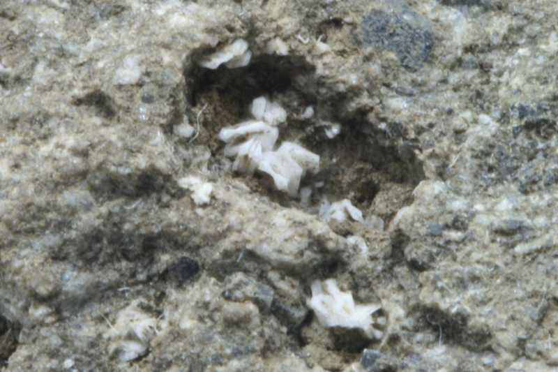 Fine slatted crystals in cavities. A polymorph of quartz from Okružné.