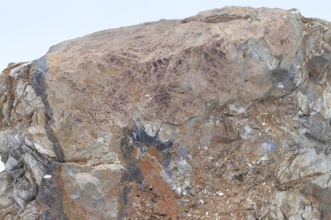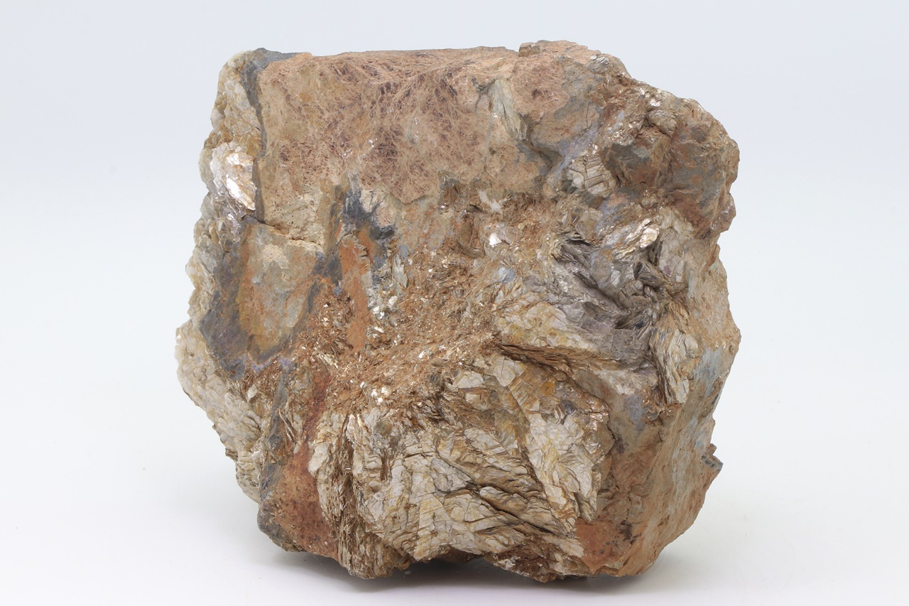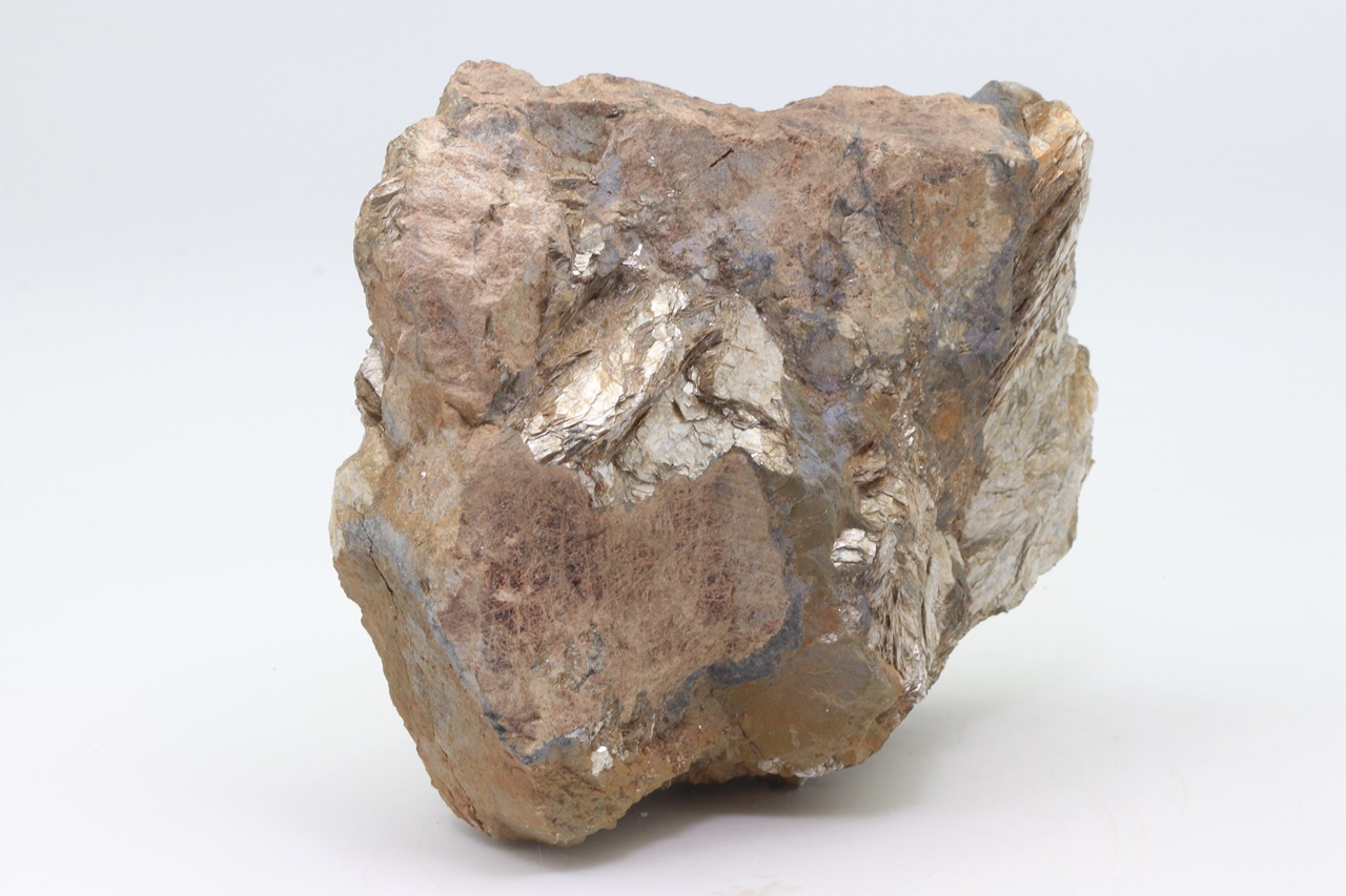 A large sample of massive ochre manganese phosphate with shiny muscovite scales from the extinct locality Bílý Kámen.