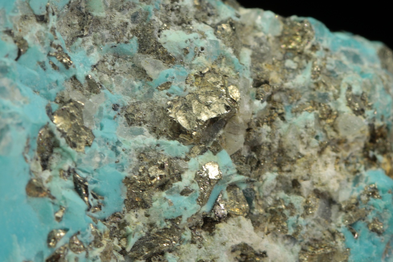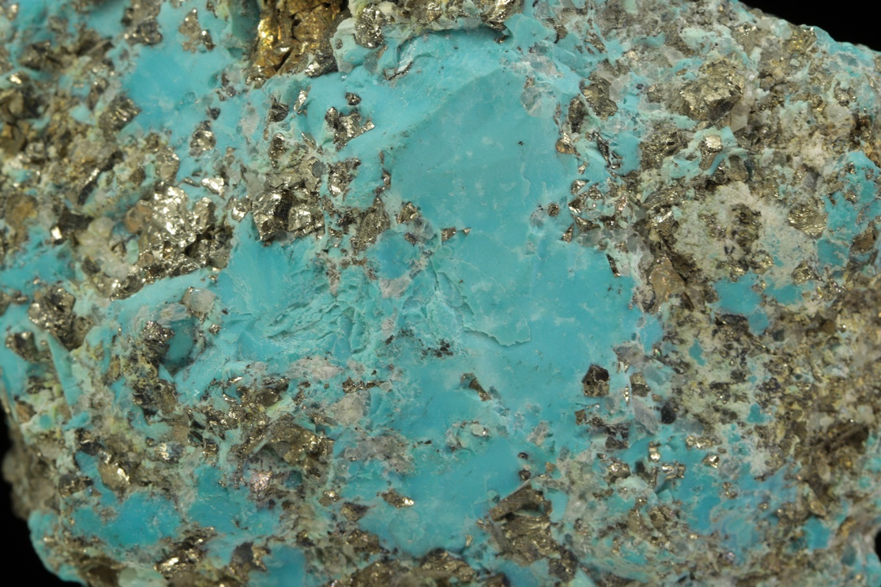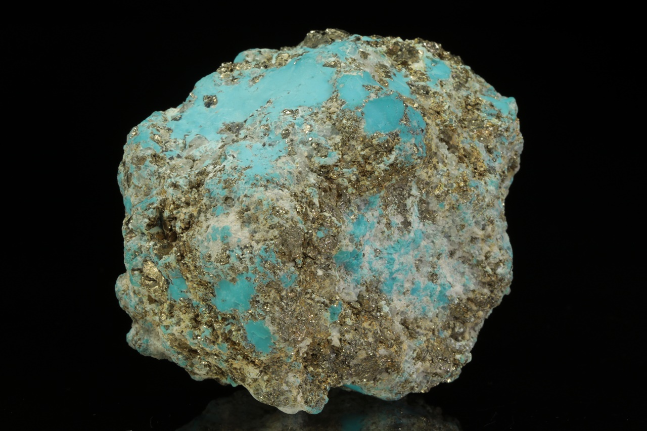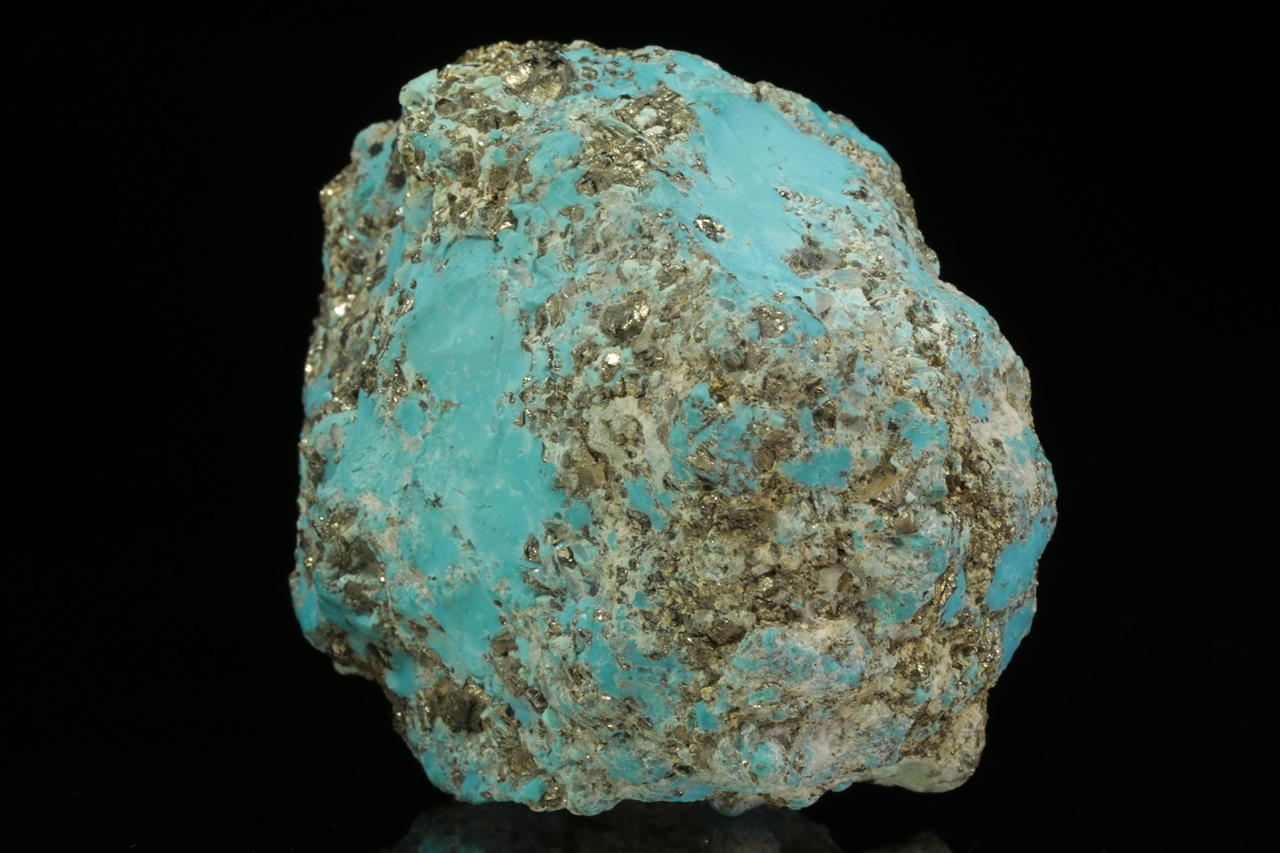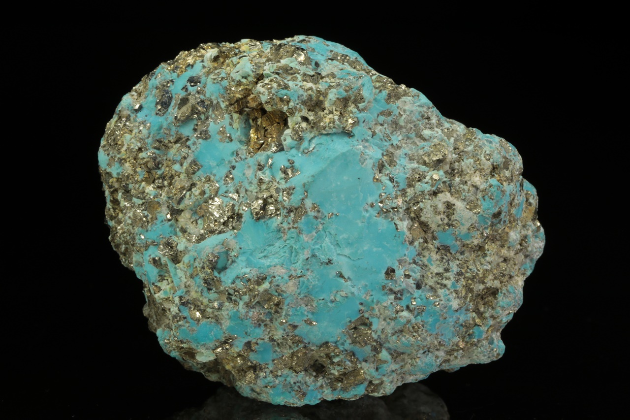 The beautifully blue Turquoise with aggregates of Pyrite from the Iranian locality has been known for 4000 years.