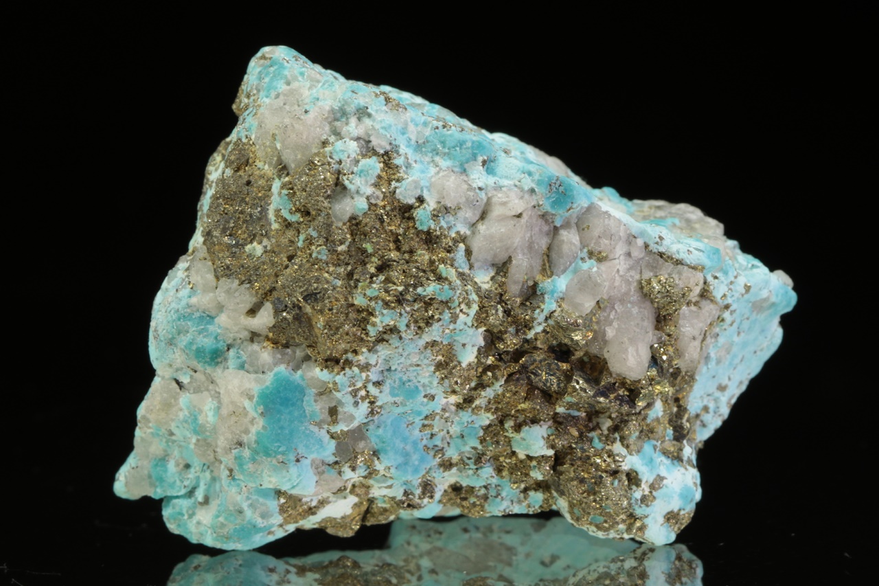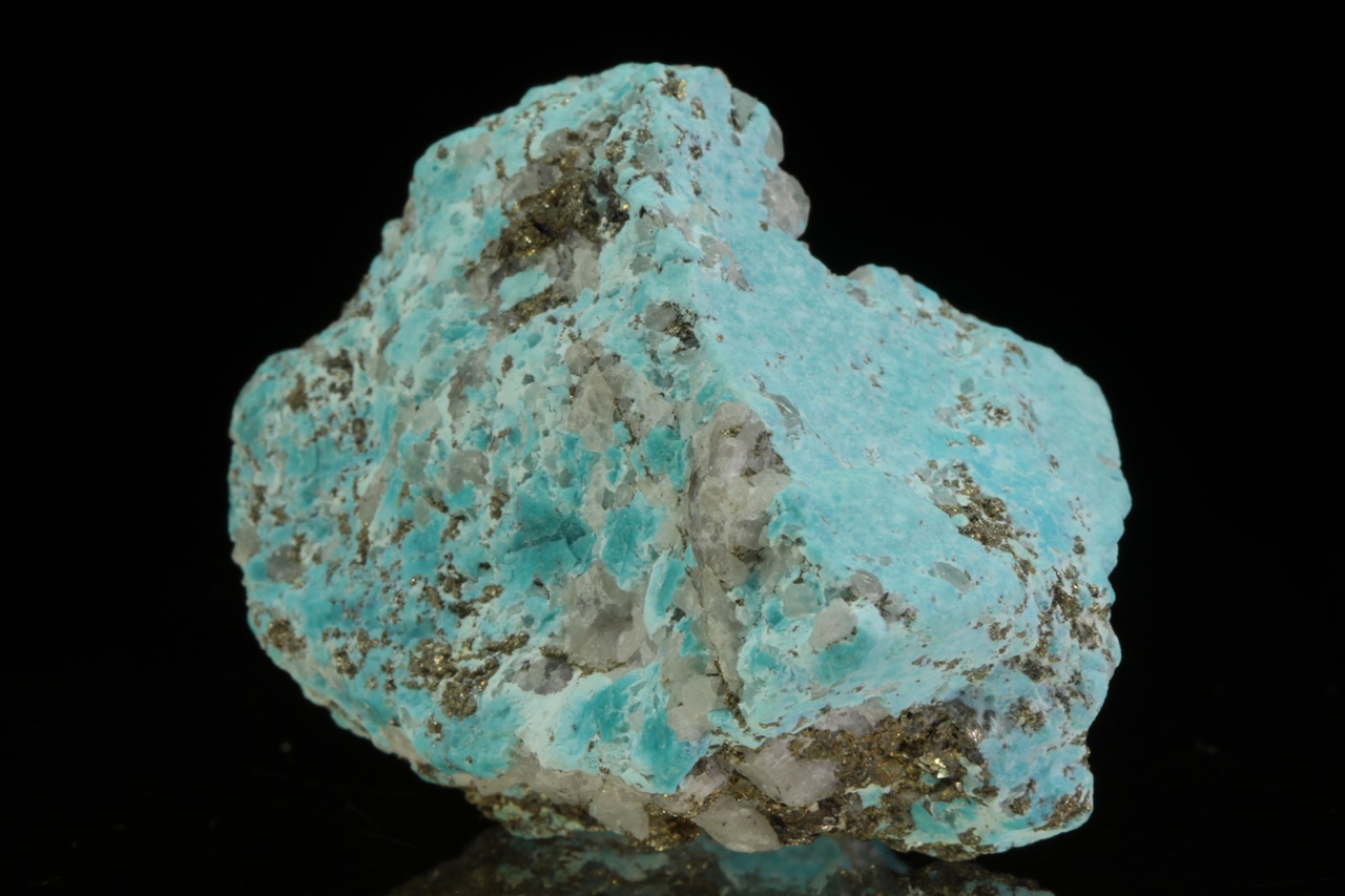 The beautifully blue turquoise with golden, metallic luster aggregates of pyrite from the Iranian location has been known for 4000 years.
