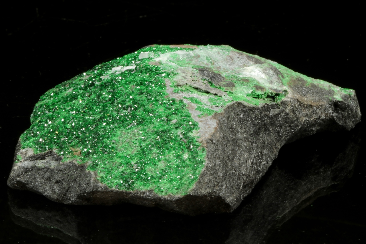 Beautiful highly lustrous green crystals of Uvarovite garnet from Russia.