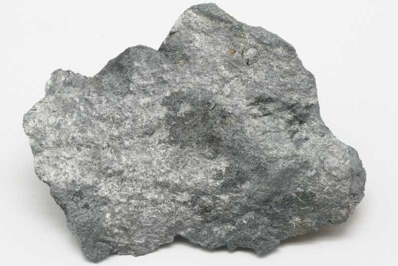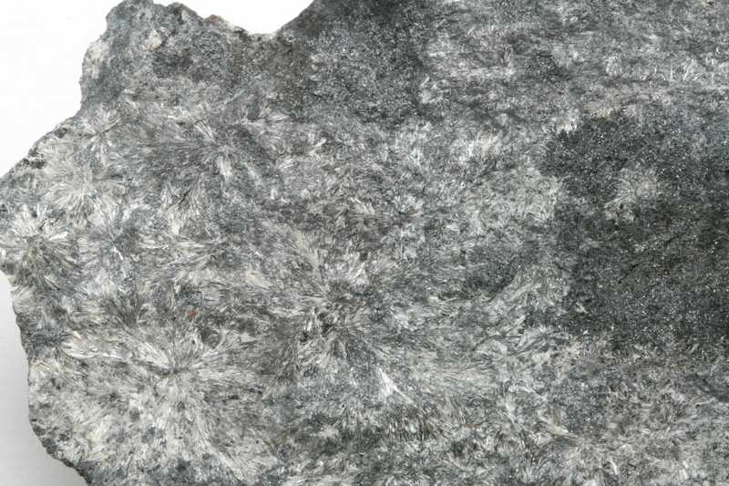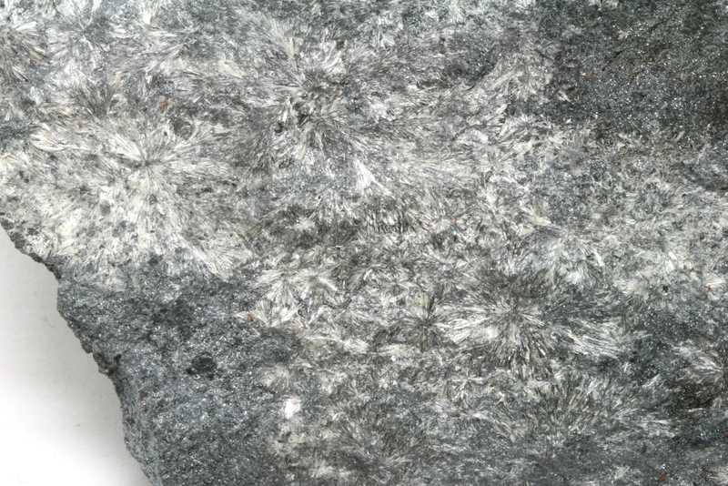 A very nice specimen of antimony oxide — valentinite from a classic Slovak locality. A rich specimen of white pearly lustrous radiall aggregates of valentinite