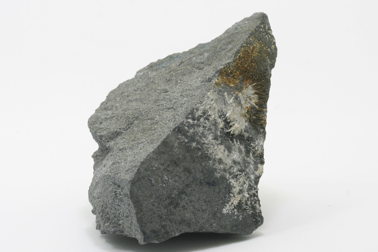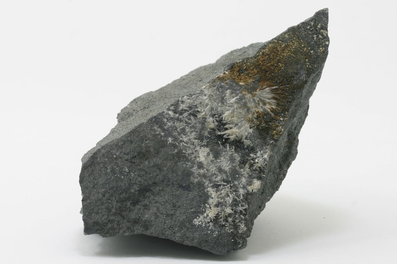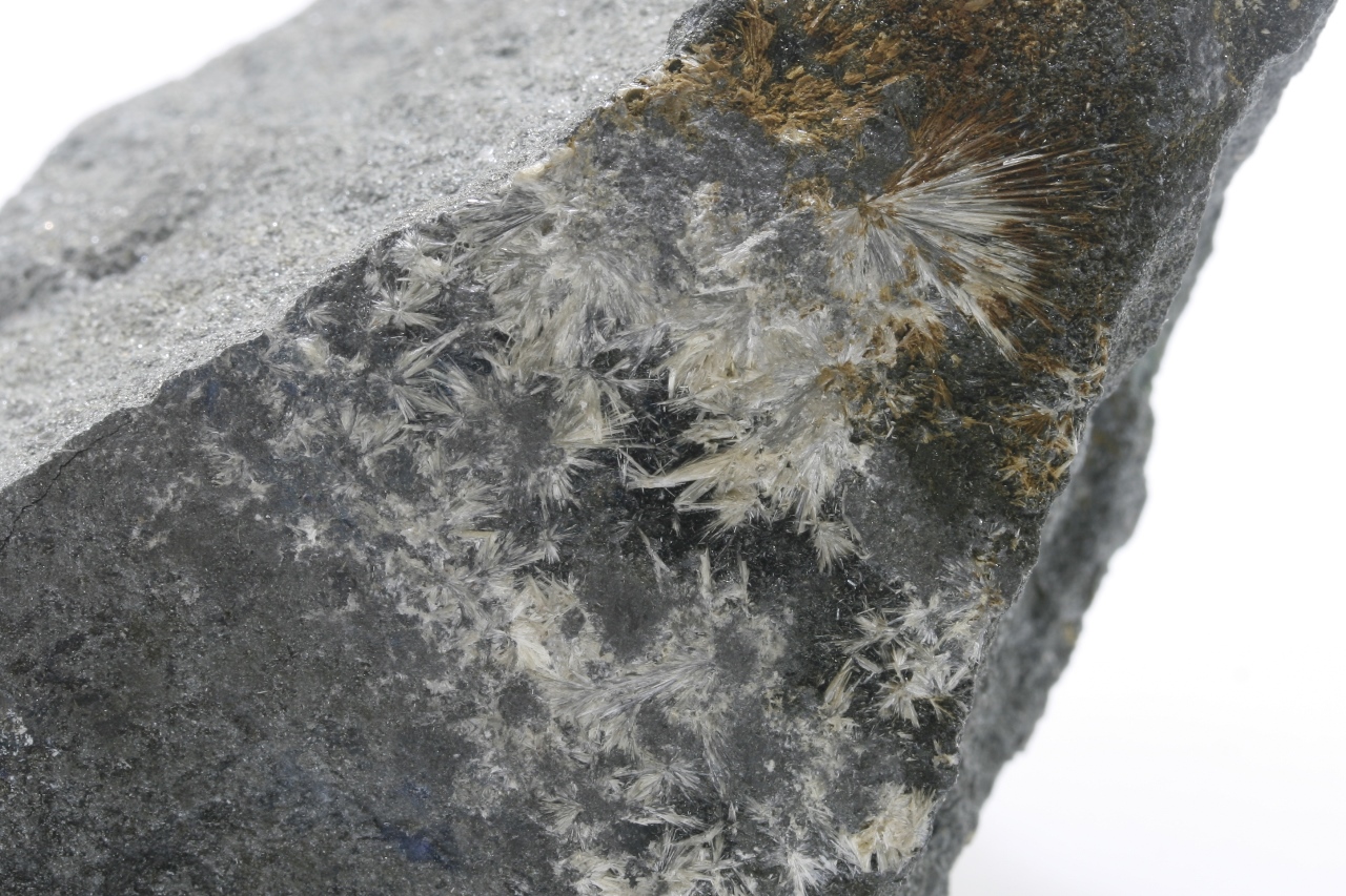 White radial aggregates of antimony oxide.